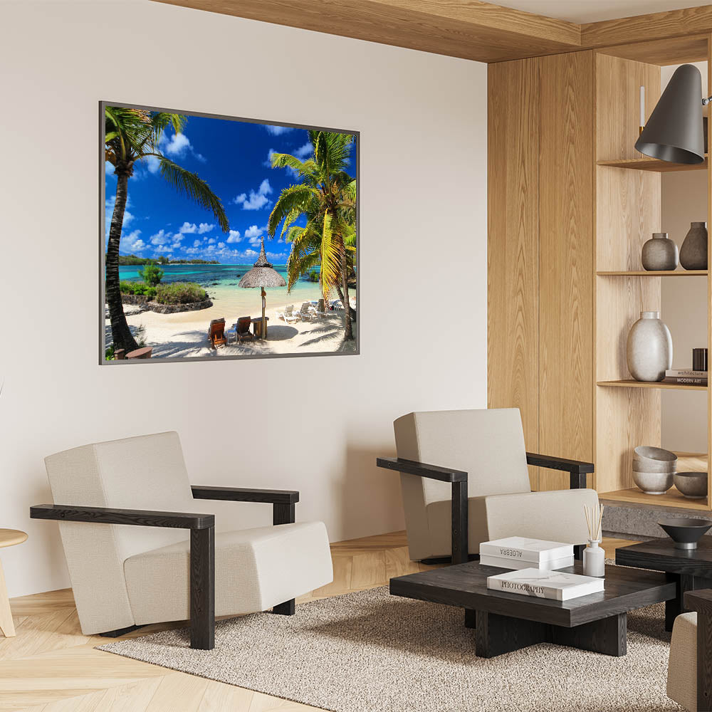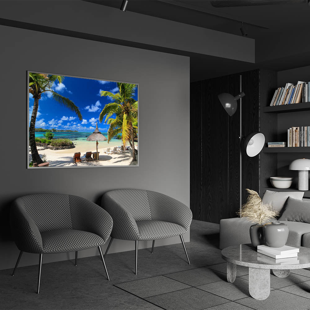 Immerse yourself in the serene beauty of a tropical escape with this exquisite Mauritius beach wall art. Capturing the crystal-clear waters and lush palm trees of an idyllic African island, this artwork brings the tranquility of paradise into your home.