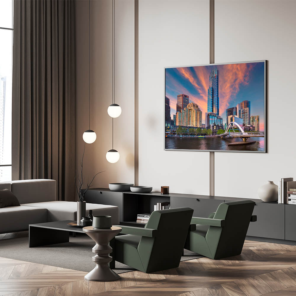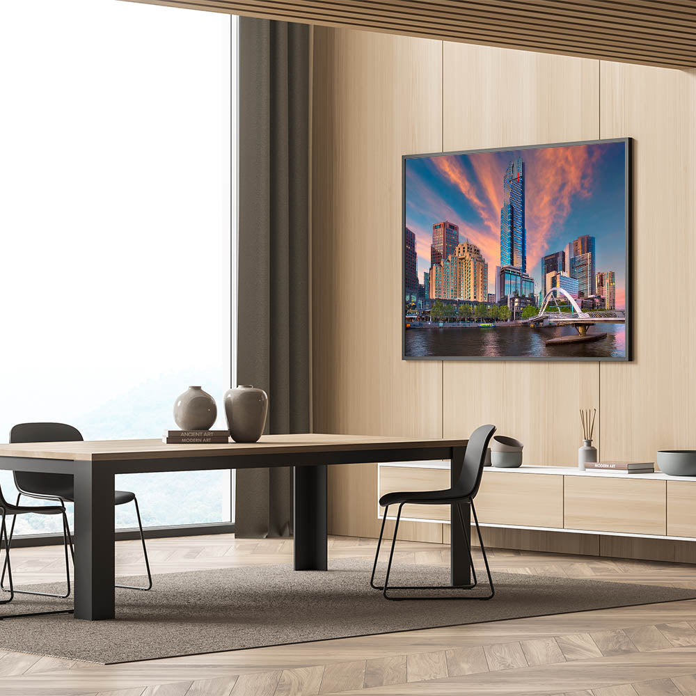 This Melbourne skyline sunset wall art is perfect for adding warmth and sophistication to any room. Whether in a living room, office, or bedroom, this piece will create a captivating focal point and bring the beauty of Melbourne’s skyline into your space.