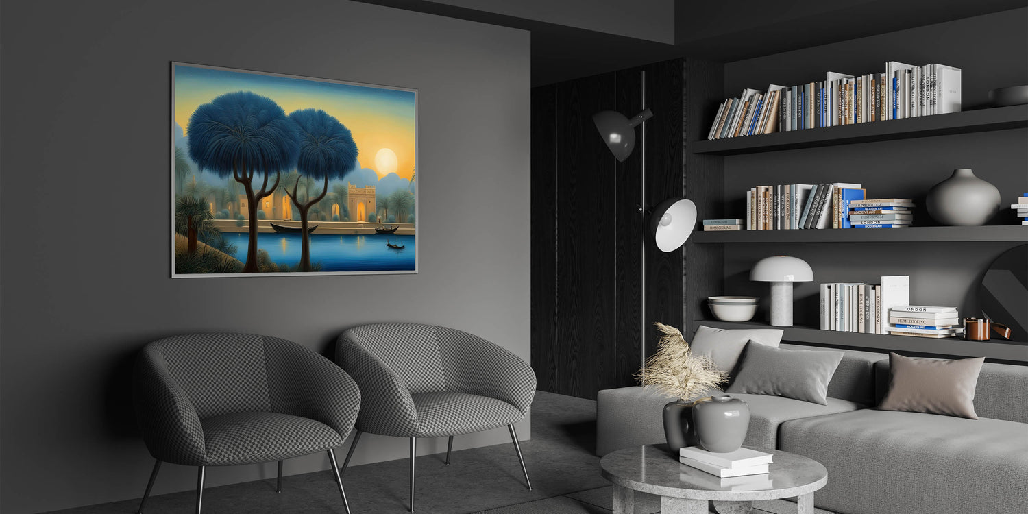 This Mesopotamian River at Dusk artwork is ideal for those who appreciate both the natural beauty and rich cultural history of the Middle East. The peaceful riverside scene evokes a sense of serenity and timelessness, making it a wonderful addition to any space. Add this exclusive Mesopotamian Art Print to your collection and let the tranquil beauty of Iraq’s landscapes enrich your home.