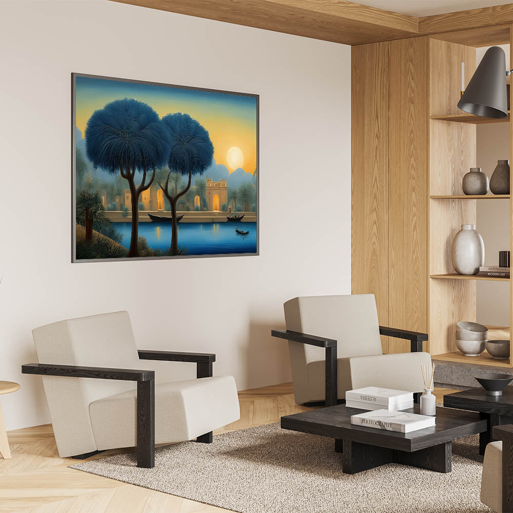 Mesopotamian River at Dusk – Middle Eastern Scenic Wall Art