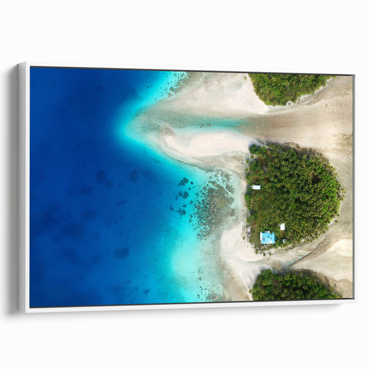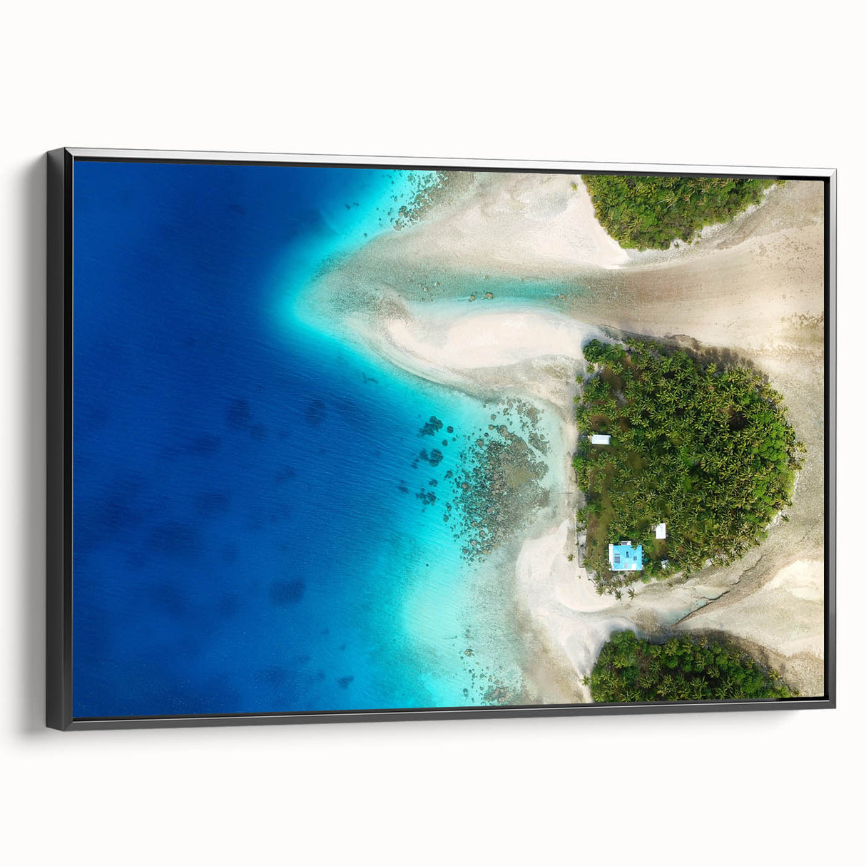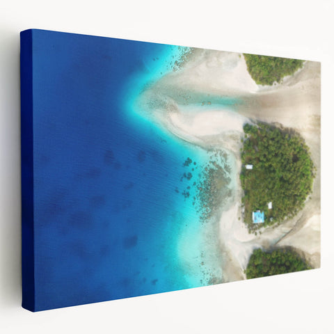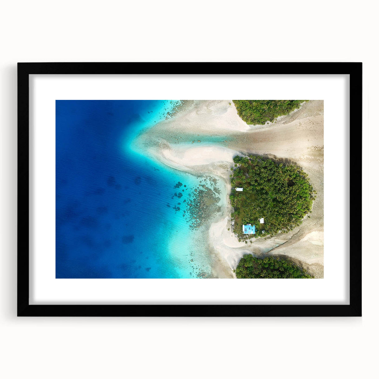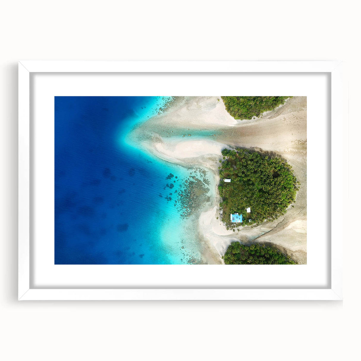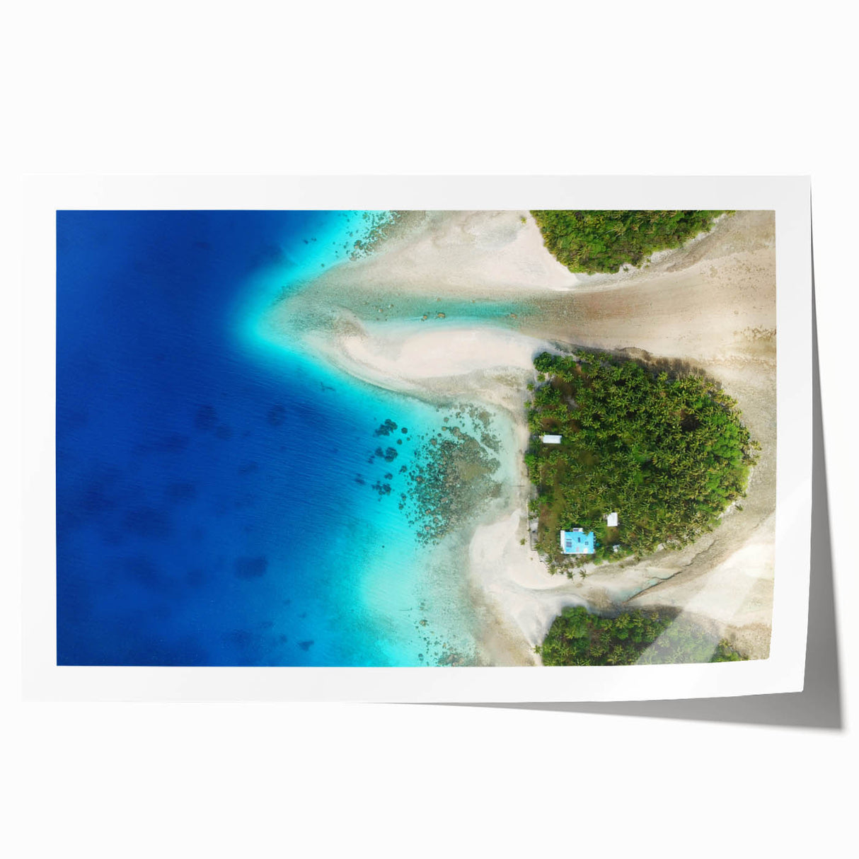 Elevate your decor with the "Micronesian Island Aerial View" print, a stunning addition to our Tropical Island Prints collection. This aerial photograph captures the striking contrast between the lush greenery of the island and the vibrant turquoise waters surrounding it, offering a spectacular perspective of Micronesia's natural beauty.
