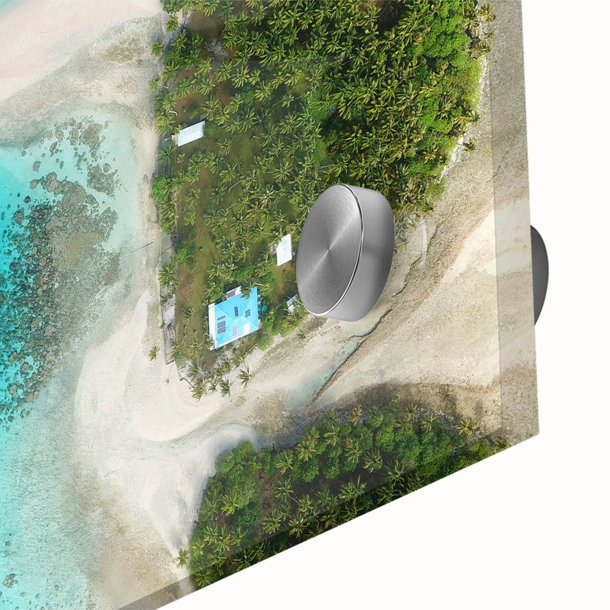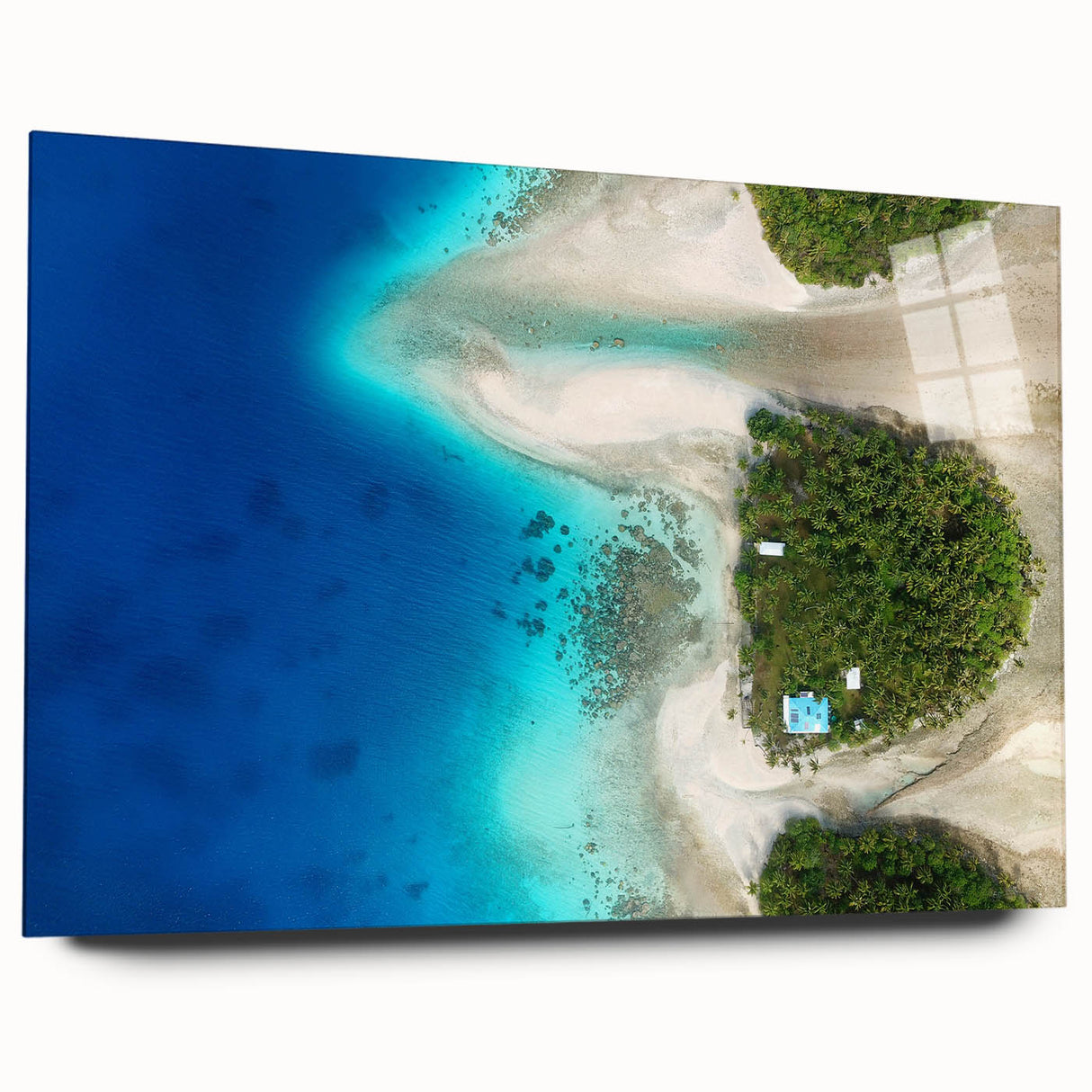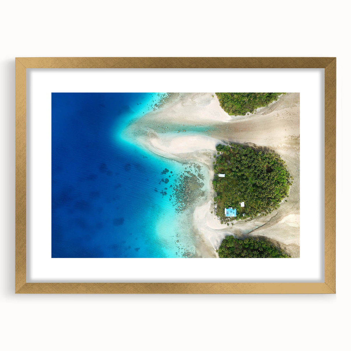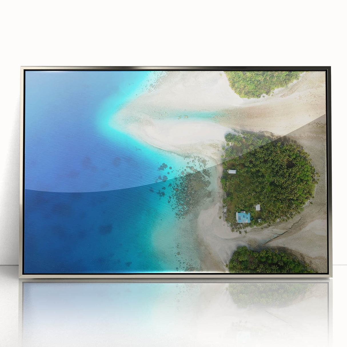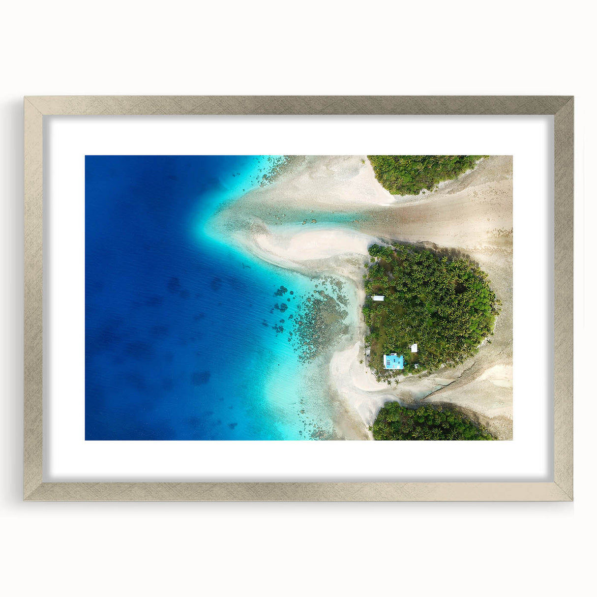 Elevate your decor with the "Micronesian Island Aerial View" print, a stunning addition to our Tropical Island Prints collection. This aerial photograph captures the striking contrast between the lush greenery of the island and the vibrant turquoise waters surrounding it, offering a spectacular perspective of Micronesia's natural beauty.