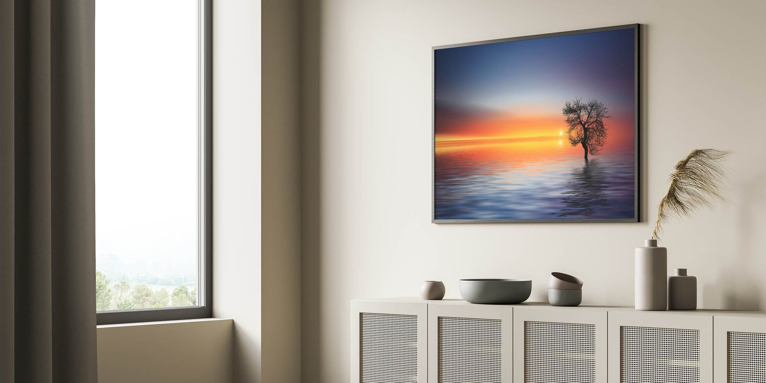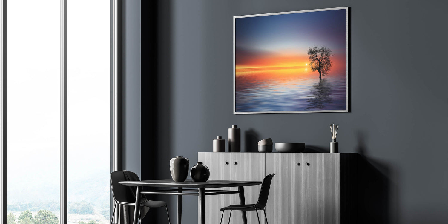 Minimalist Landscape Wall Art – Tree Silhouette with Sunset Reflections