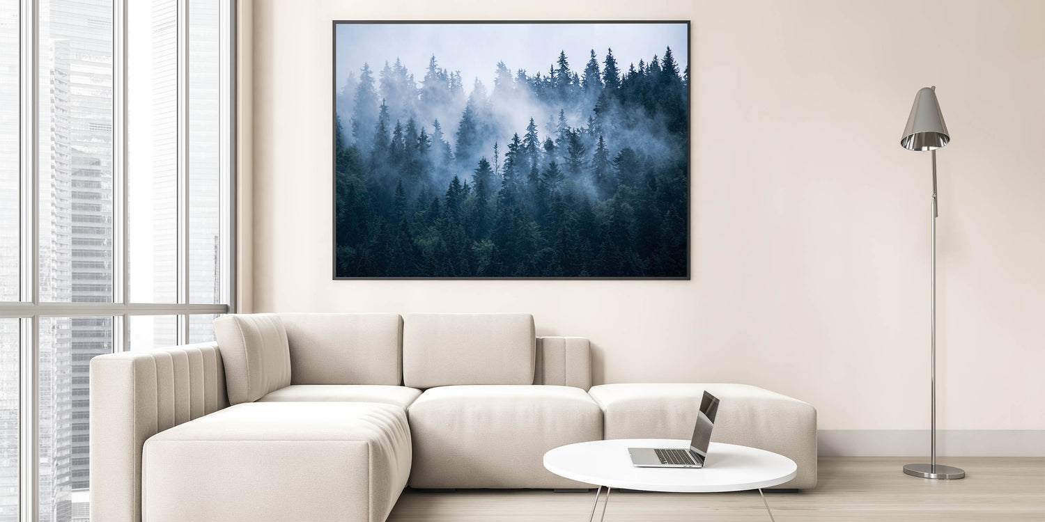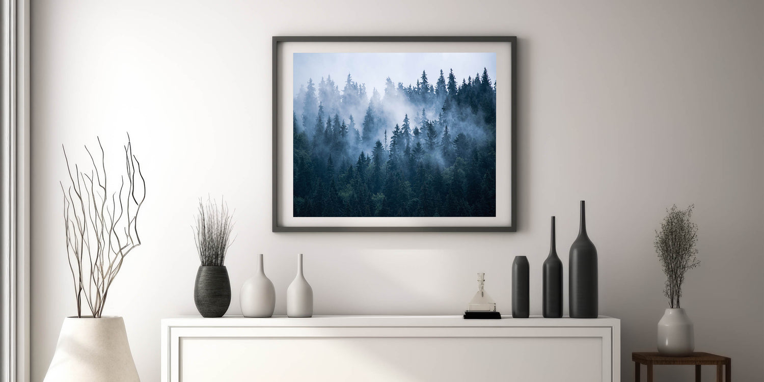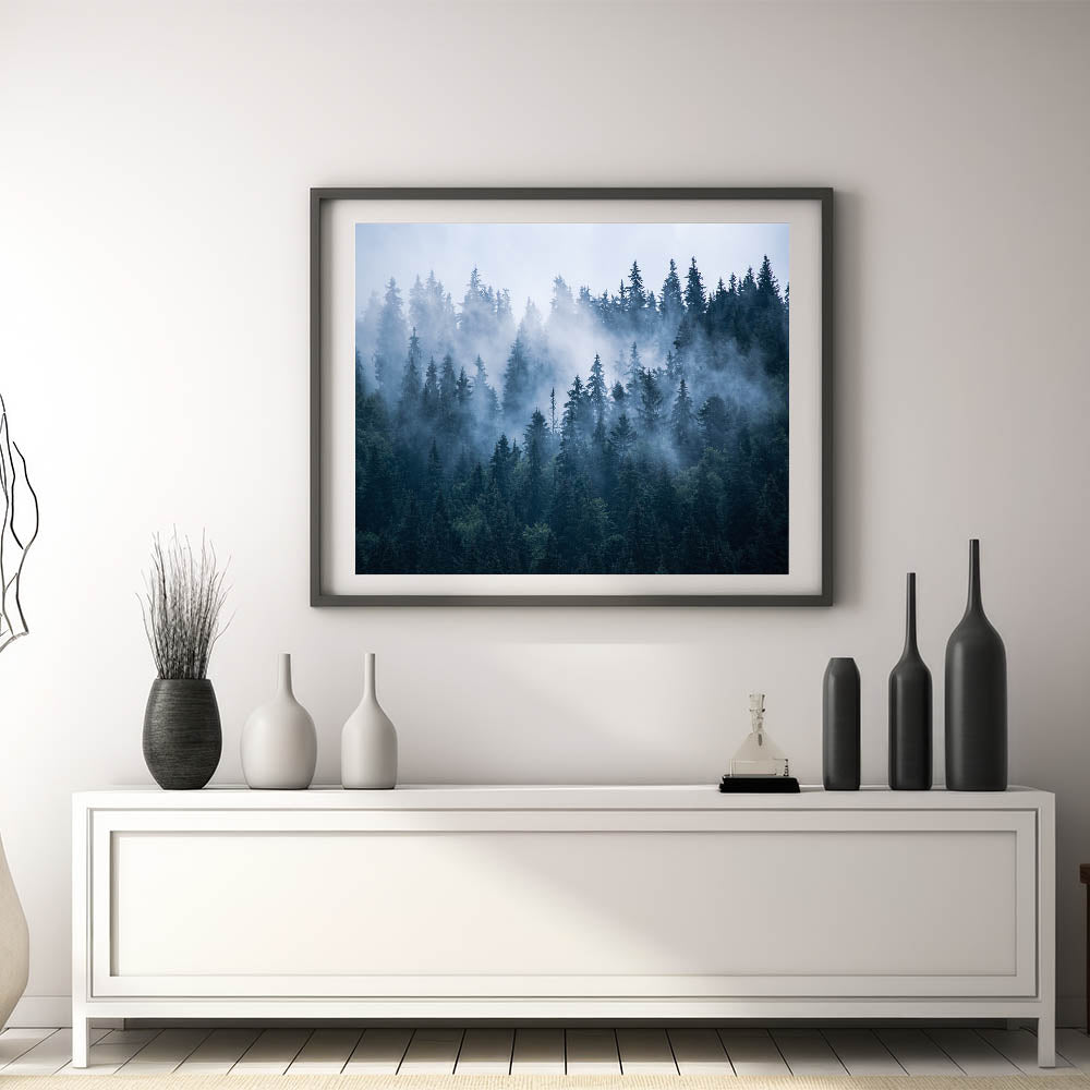 Misty Evergreen Forest Art - Serene Foggy Tree Line Wall Decor