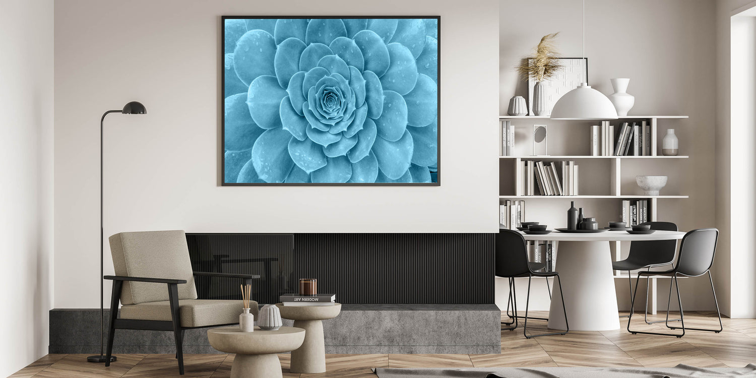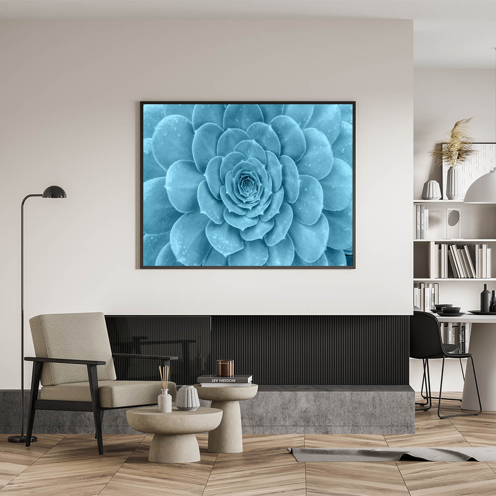 Transform your space with this captivating blue succulent wall art. Featuring a stunning close-up of a succulent in cool blue tones, this piece brings a modern and refreshing vibe to any room. The intricate details of the plant's leaves, combined with the monochromatic color palette, make this artwork a unique addition to your home decor. Whether you're looking to add a pop of color or create a calm atmosphere, this vibrant succulent print is the perfect choice.