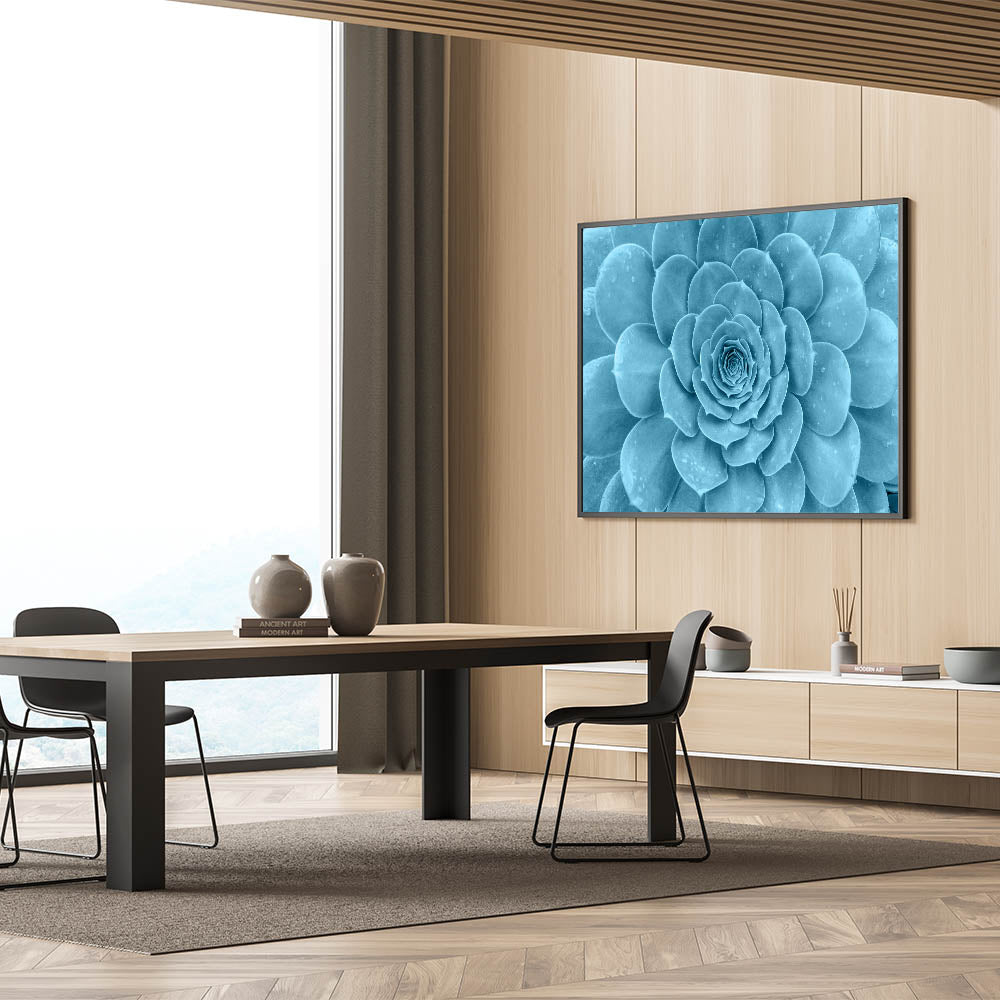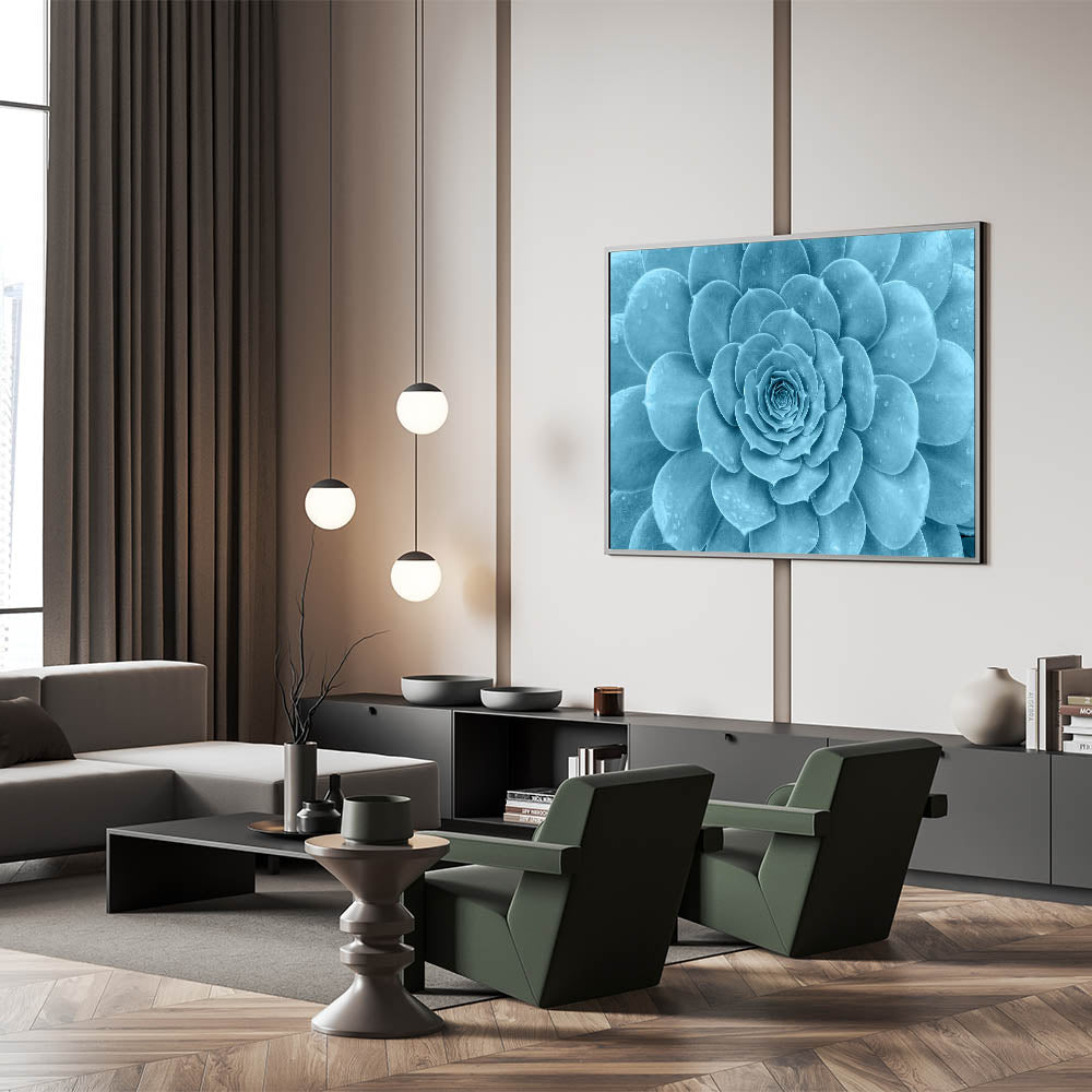 This blue succulent artwork is designed to create a serene, yet stylish atmosphere. Its modern look makes it versatile for various decor styles, from minimalist to contemporary. Add this stunning piece to your collection today and elevate your interior design.