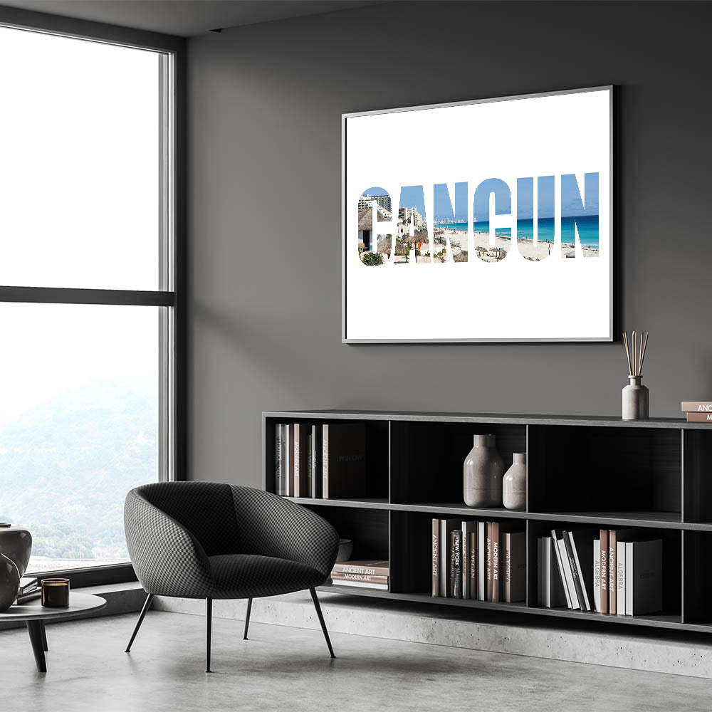 This Cancun photography print with its modern typography is an excellent addition for those seeking to balance contemporary style with tropical flair. The clean lines and vibrant beach scene make it an eye-catching piece in any room.