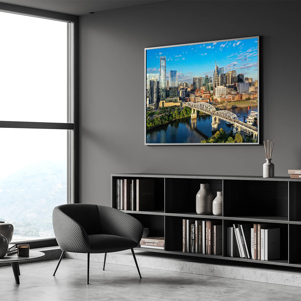 - Sharp and Vivid: The crisp details and vibrant colors highlight Nashville's modern skyline against a backdrop of clear skies.