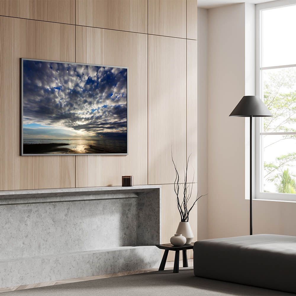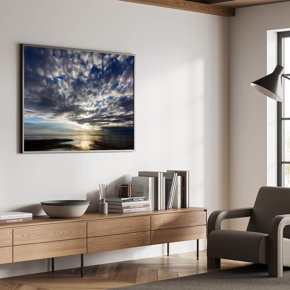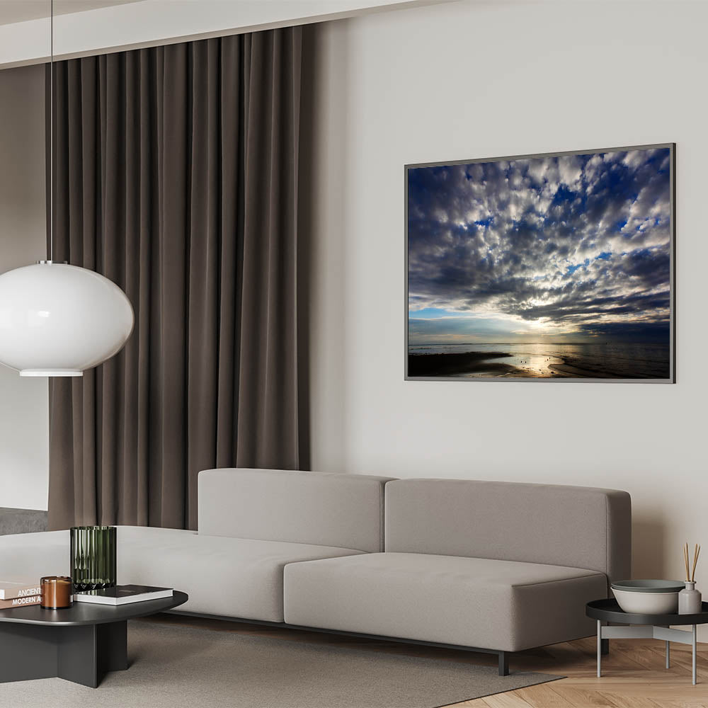 - High-Quality Print: Expertly crafted with high-resolution printing to capture the subtle details and rich contrasts of the moody sky and calm seashore.