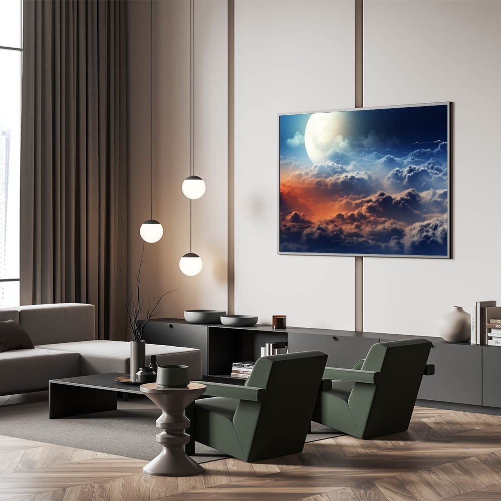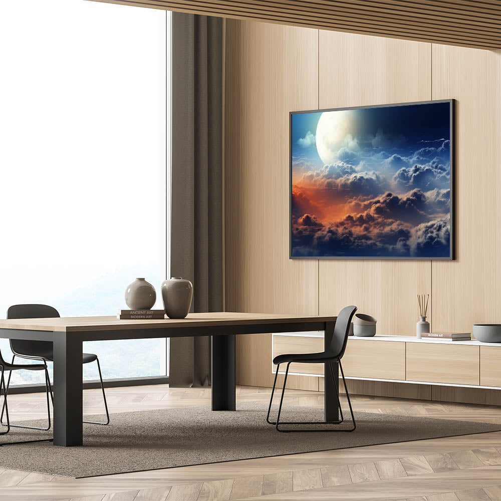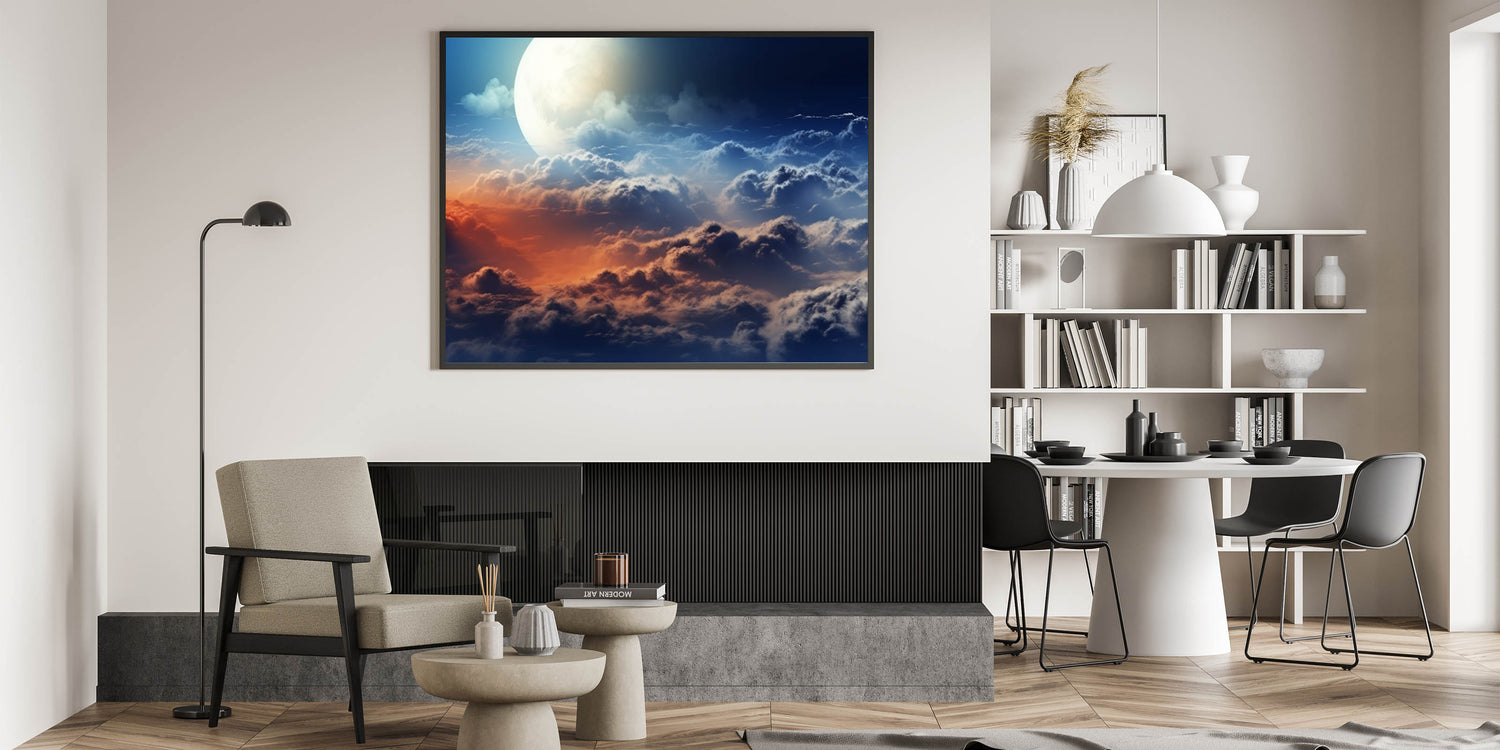 Perfect for bedrooms, living rooms, or any space where you want to create a calming and mystical atmosphere, this moonlit cloudscape wall art is sure to inspire and delight.