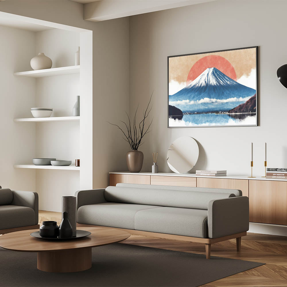 Mount Fuji Sunrise Canvas - Japanese Scenic Art with Minimalist Design