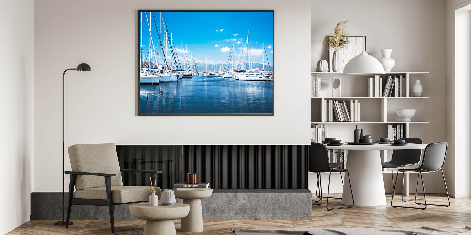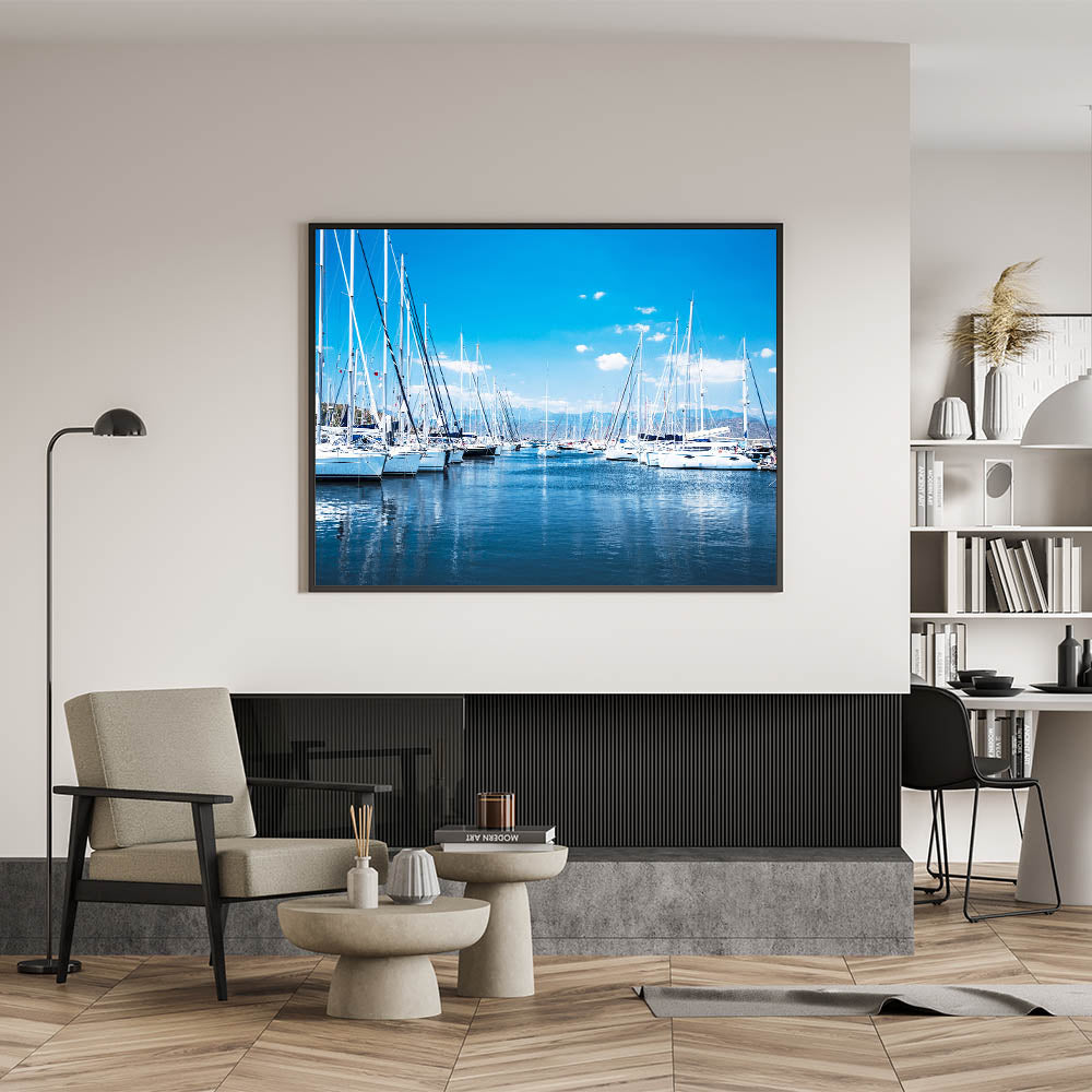 Elevate your interior decor with this elegant and calming harbor-themed wall art, perfect for creating a peaceful seaside ambiance in any room.