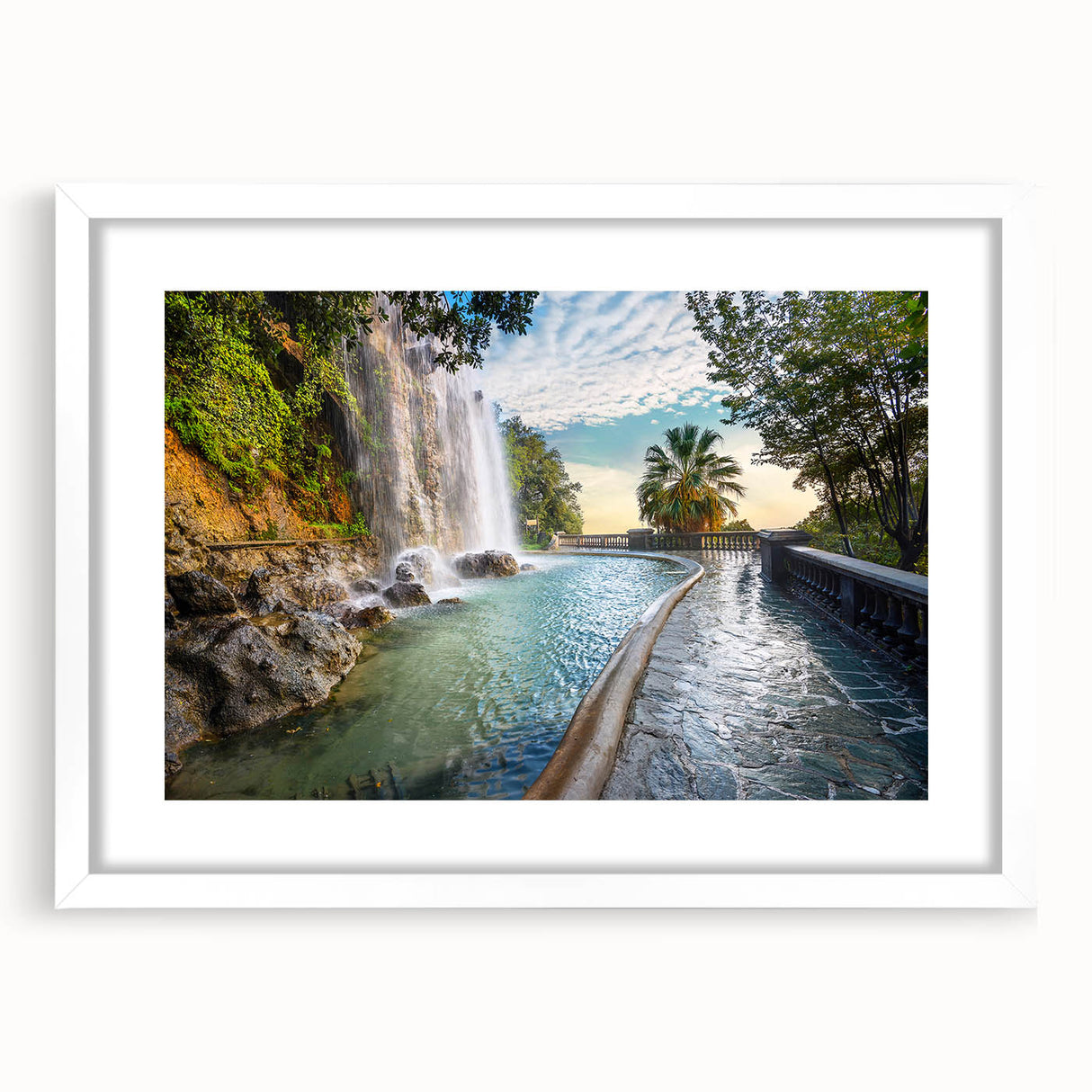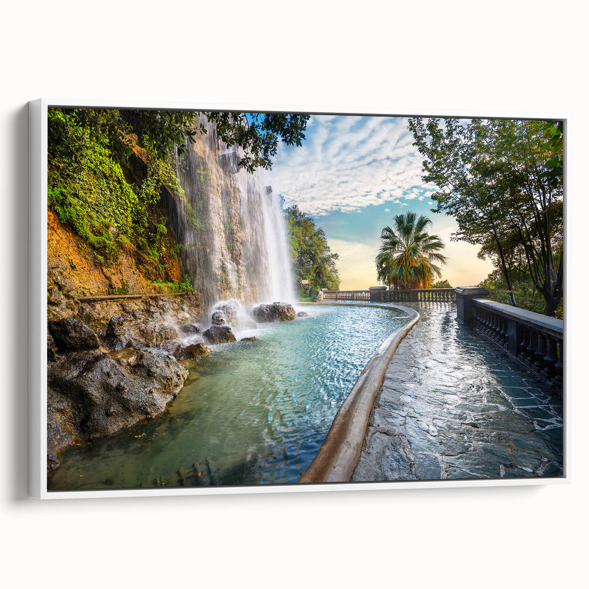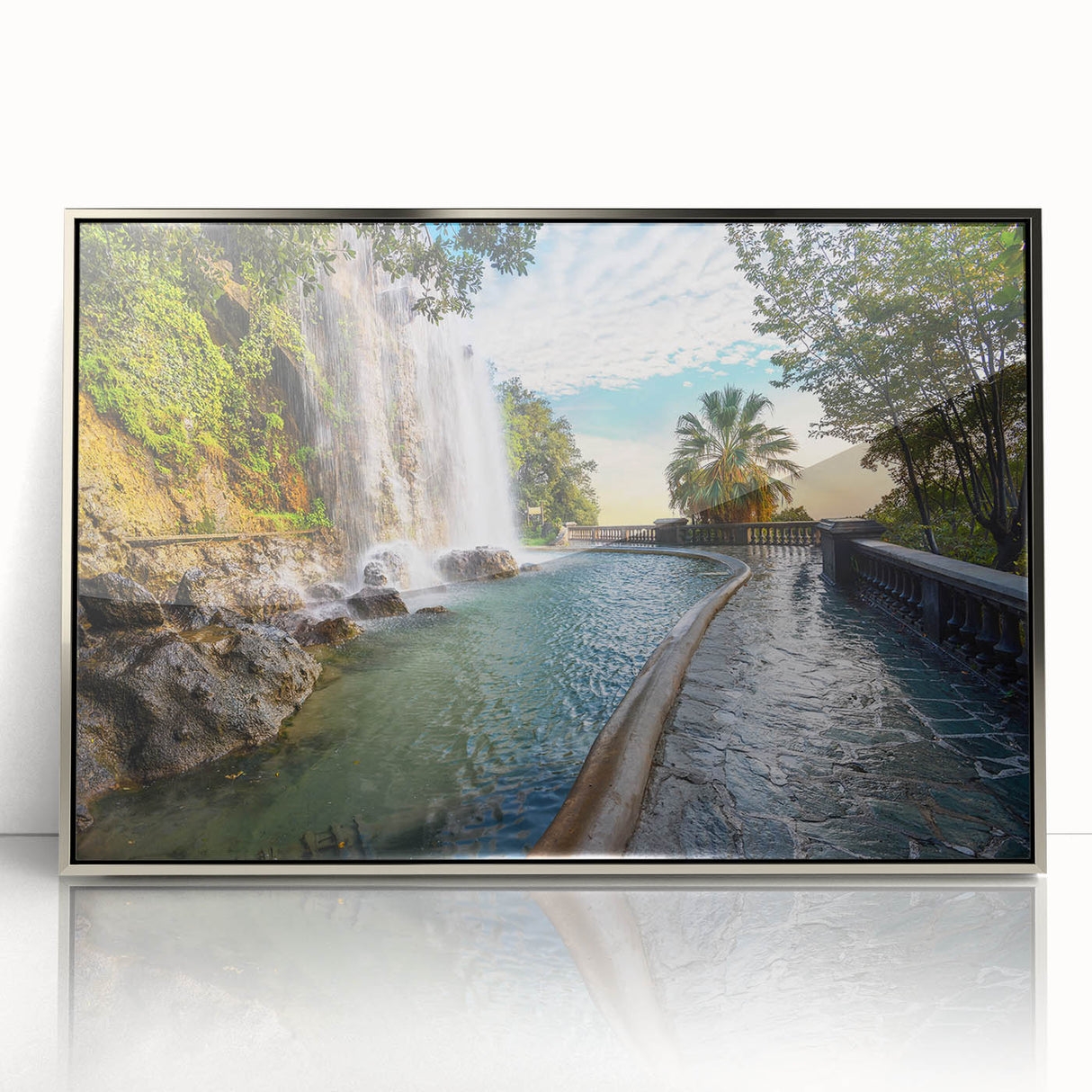 Experience the natural beauty of the French Riviera with this breathtaking Nice Landmark Art featuring a tranquil waterfall scene nestled within a lush garden. The flowing water cascades down mossy rocks, creating a serene atmosphere as it pools into a clear blue pond. This stunning Scenic Nice Canvas captures the essence of nature's calm, making it an ideal piece for anyone seeking to bring the peacefulness of Nice, France, into their home.