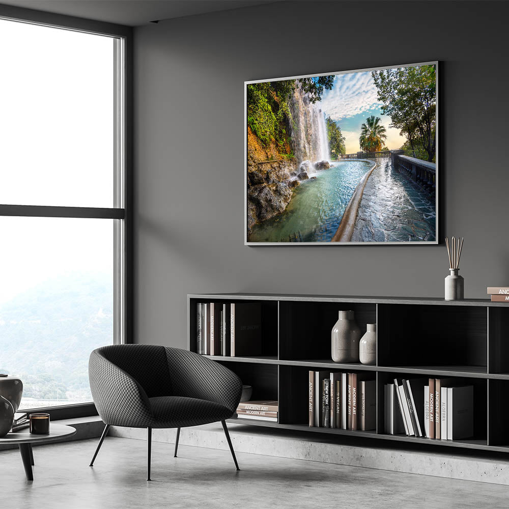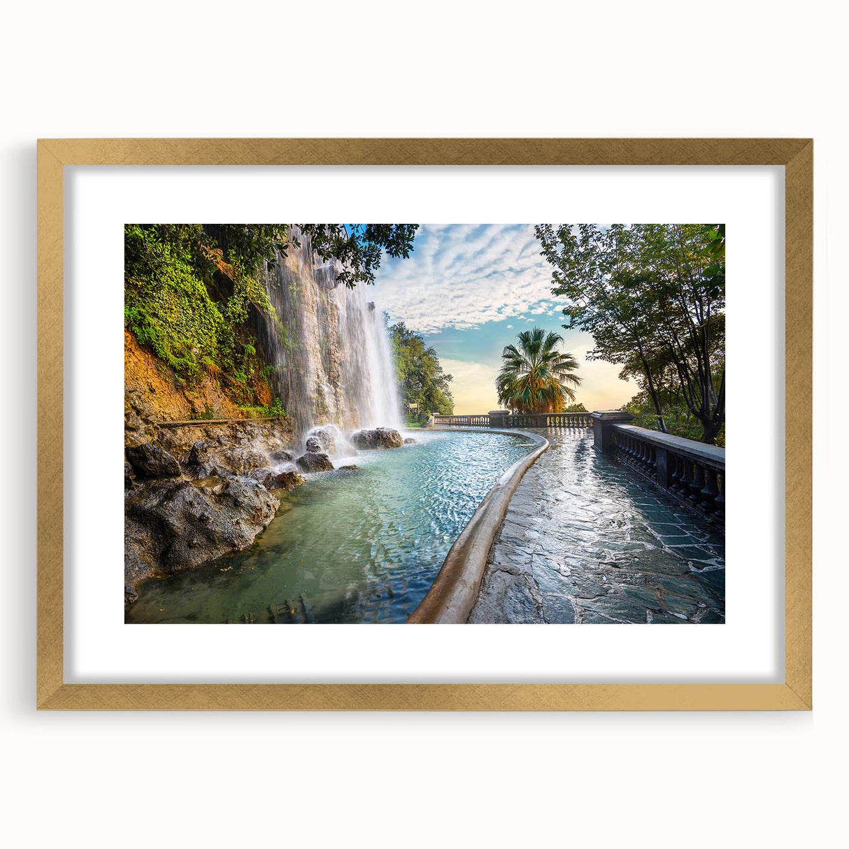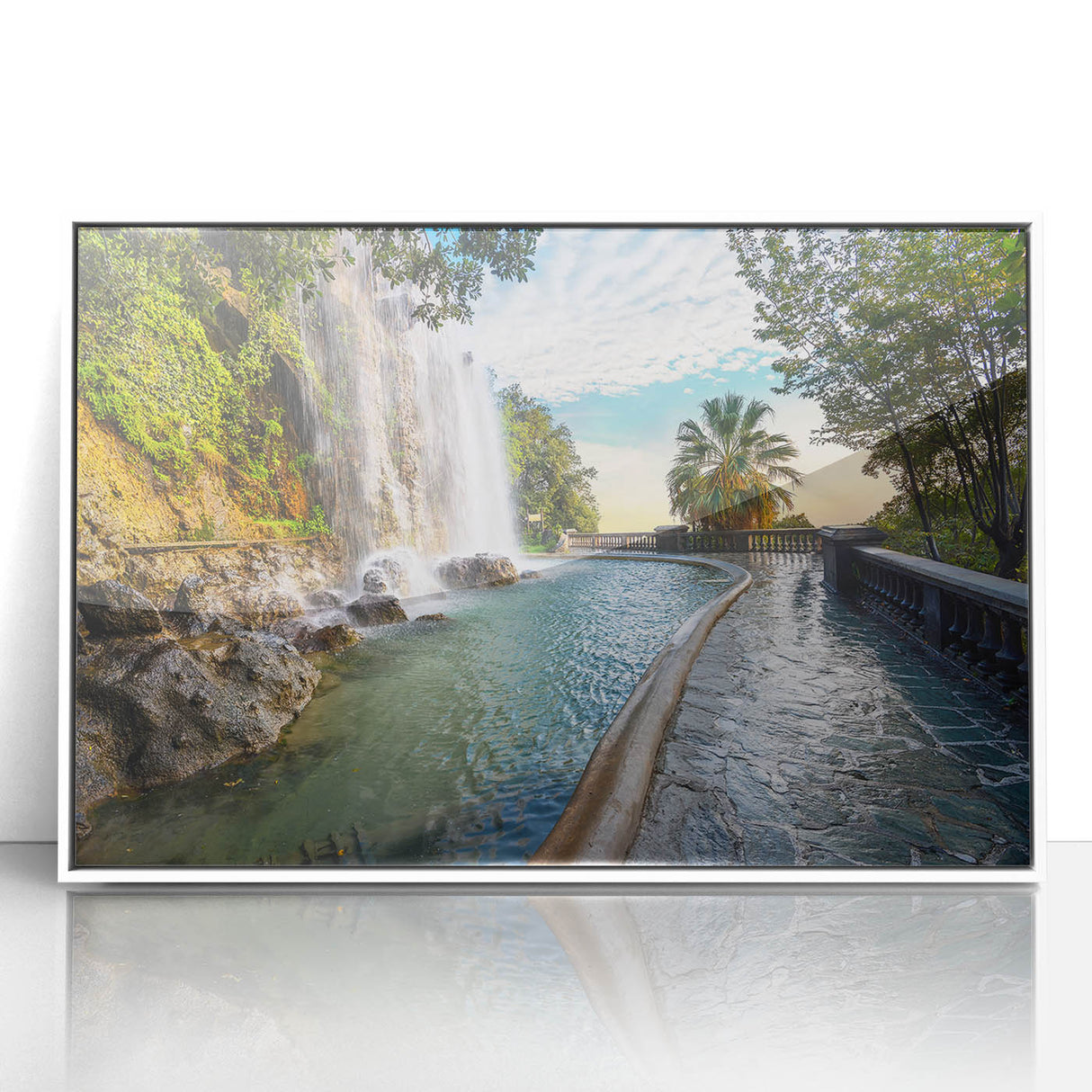 Experience the natural beauty of the French Riviera with this breathtaking Nice Landmark Art featuring a tranquil waterfall scene nestled within a lush garden. The flowing water cascades down mossy rocks, creating a serene atmosphere as it pools into a clear blue pond. This stunning Scenic Nice Canvas captures the essence of nature's calm, making it an ideal piece for anyone seeking to bring the peacefulness of Nice, France, into their home.