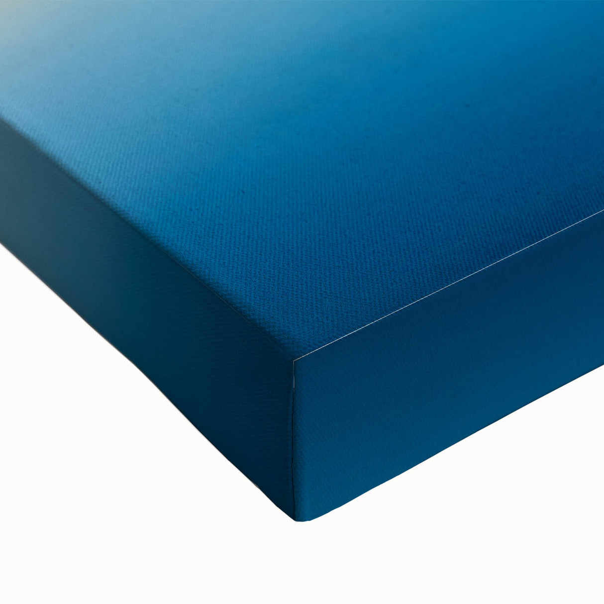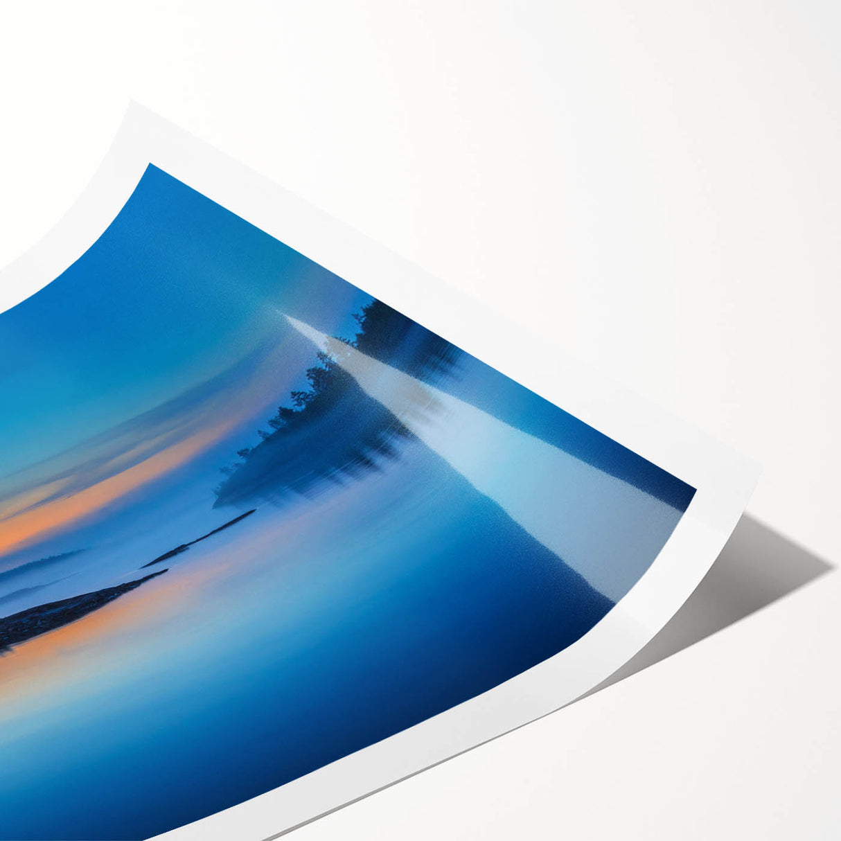 - Beautiful mix of vibrant sunset colors and cool blue mist, offering a tranquil aesthetic for any room.
