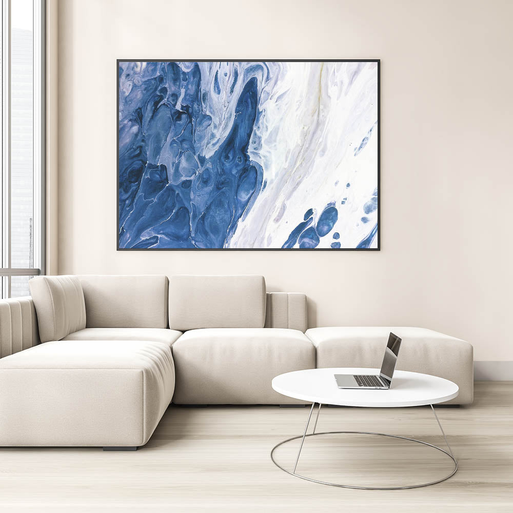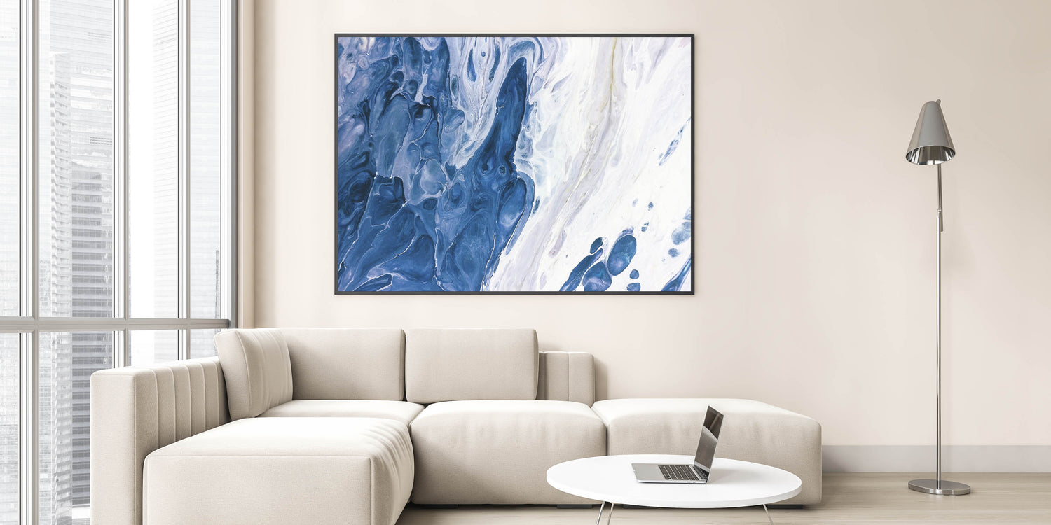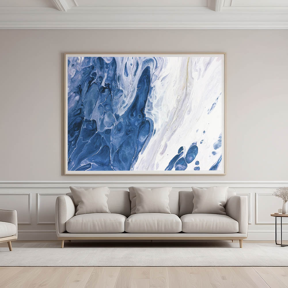 Immerse yourself in the calming waves of our "Ocean-Inspired Abstract Strokes." This fluid canvas art captures the essence of the ocean with its mesmerizing blend of deep blues and soft whites. The swirling patterns evoke the gentle motion of the sea, creating a tranquil and soothing atmosphere in any space. Perfect for those who seek a connection to nature or a touch of coastal elegance in their decor, this piece is both calming and visually captivating.