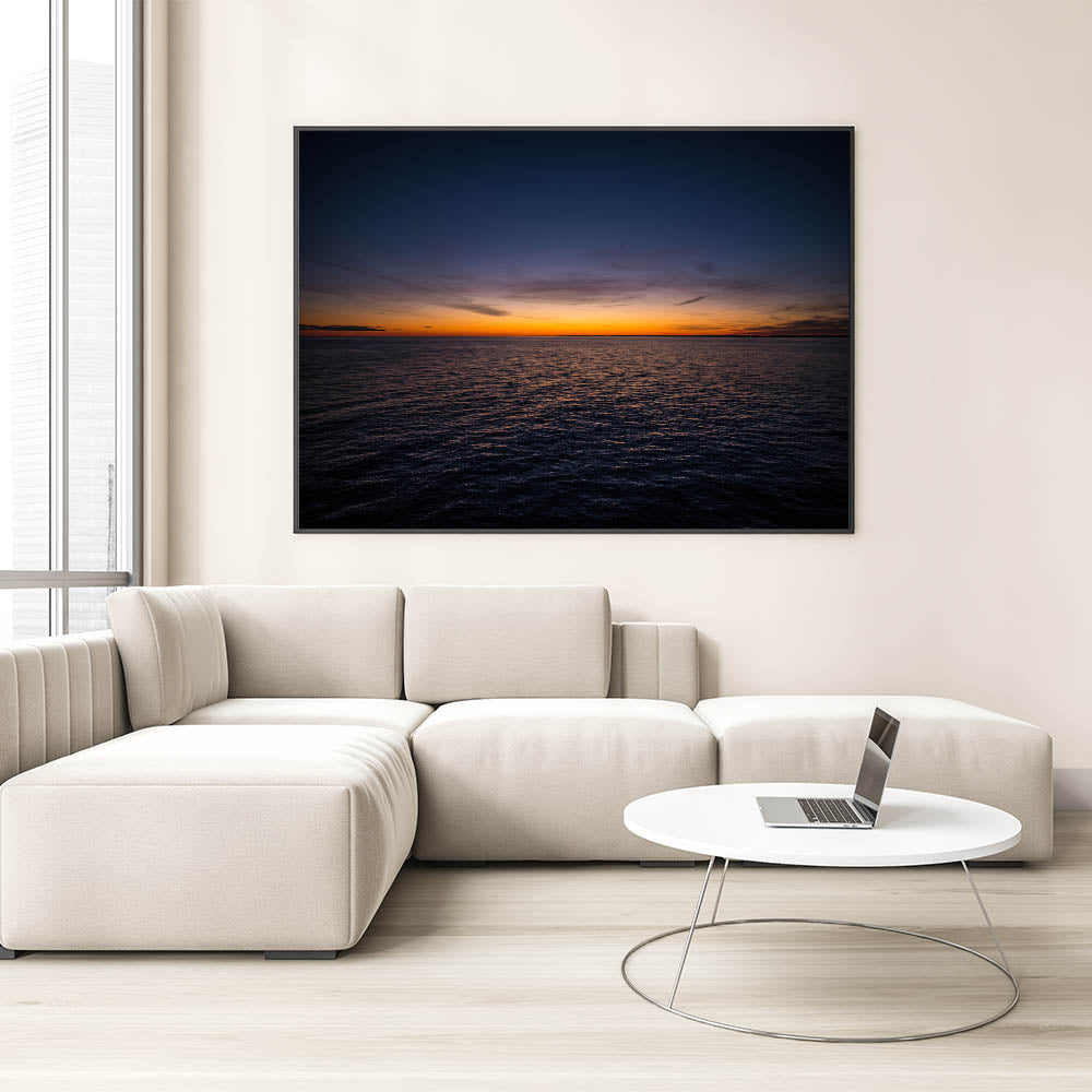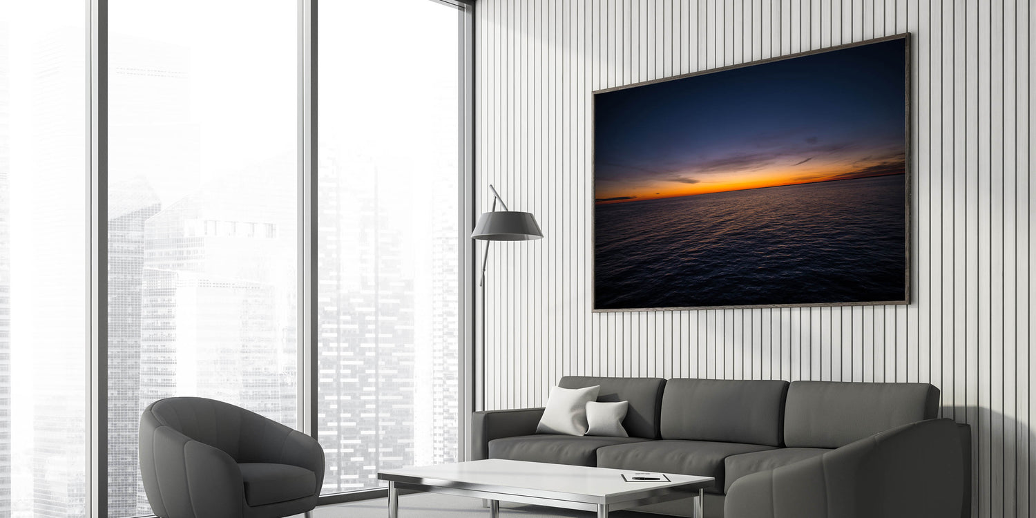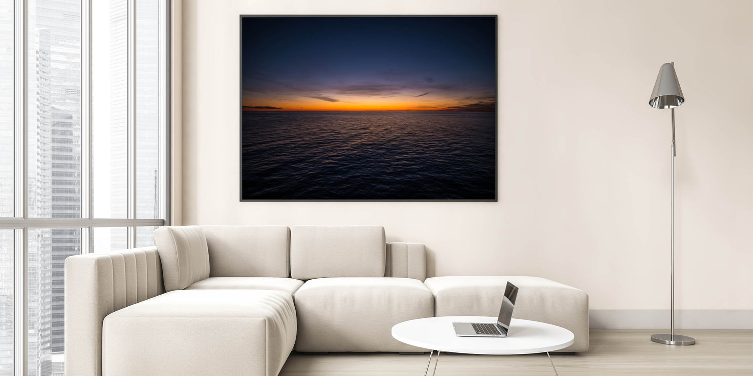 Embrace the tranquil beauty of a New Brunswick sunset over the open ocean with this stunning wall art. The soft hues of the setting sun cast a peaceful glow over the water, creating a serene, minimalist composition that will bring calm and elegance to any room. Perfect for those who appreciate simplicity and natural beauty, this artwork will transform your space into a peaceful retreat.