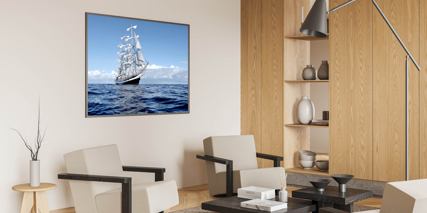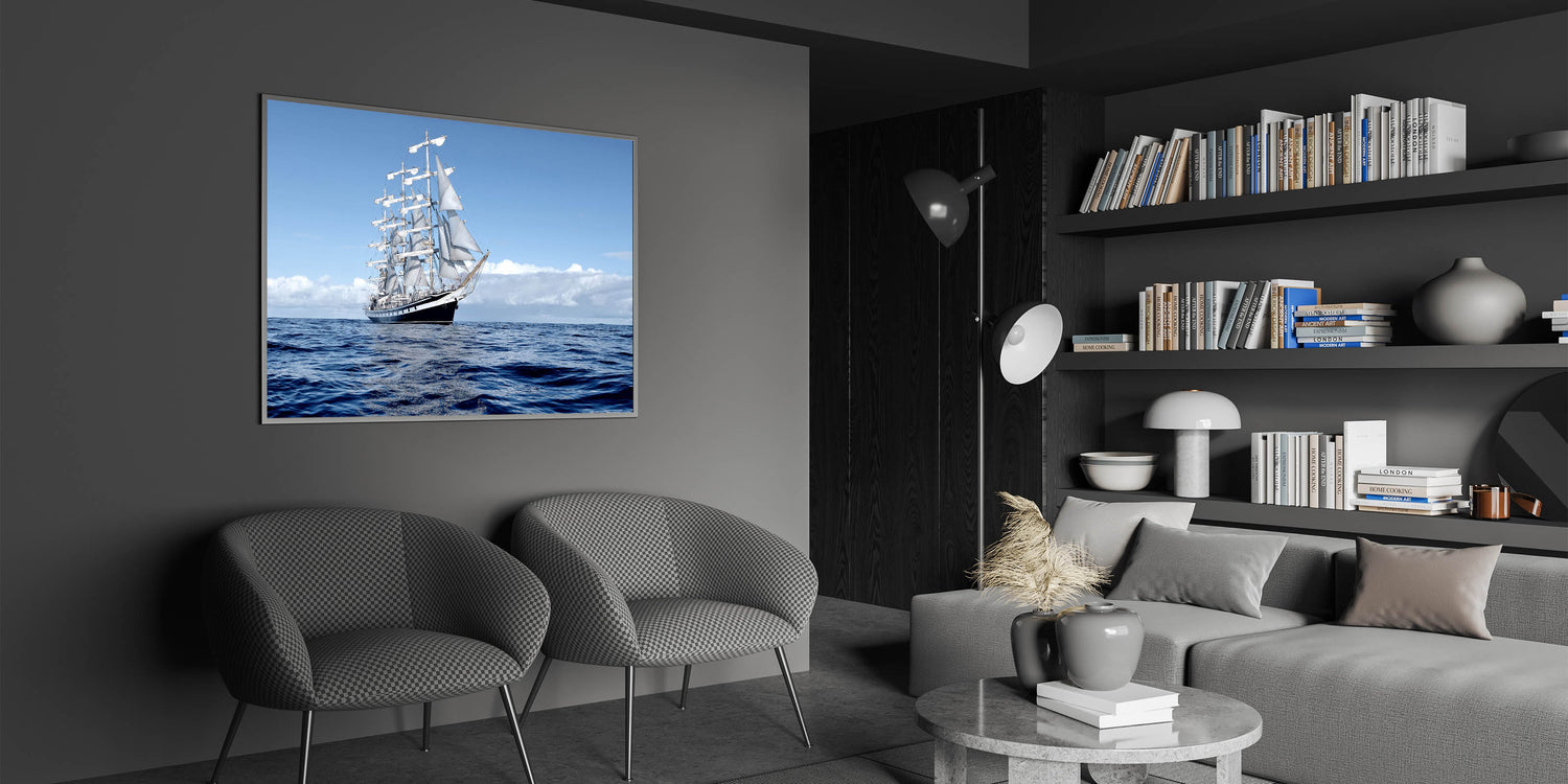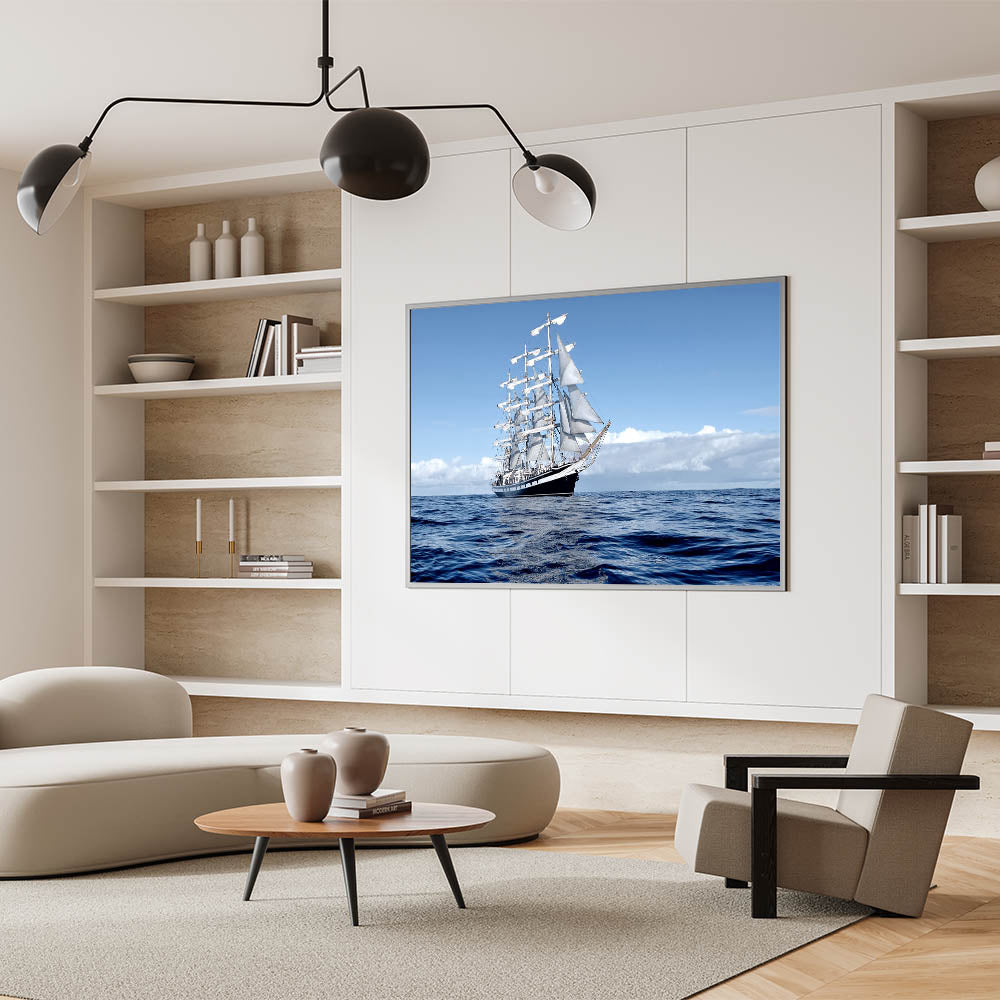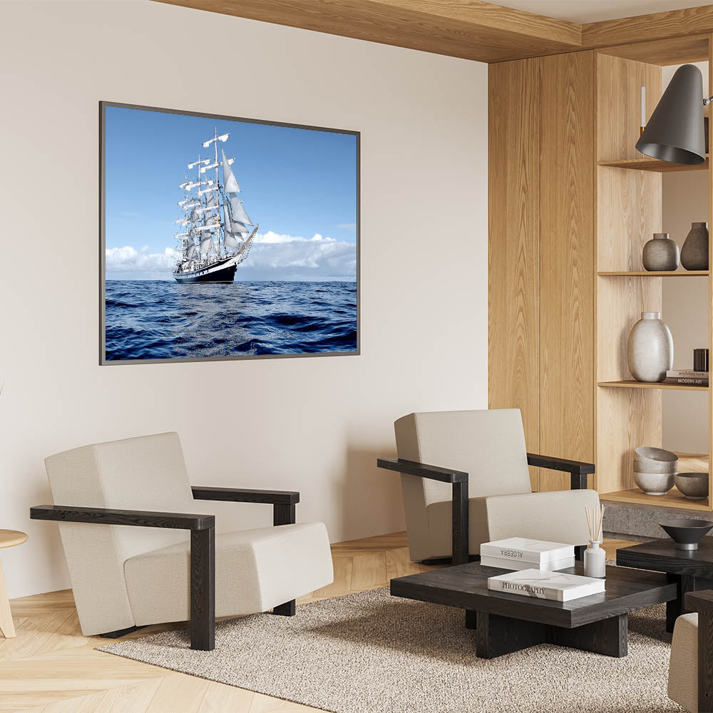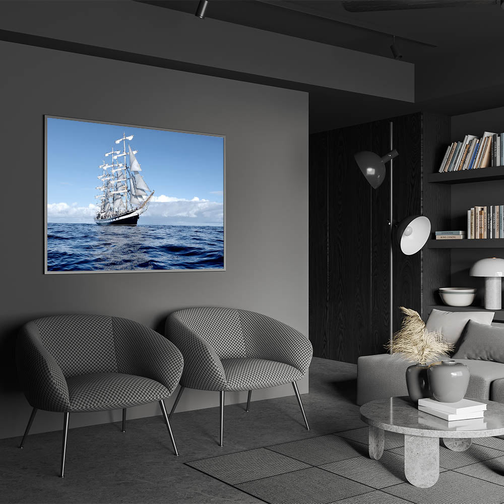 - Vivid and Inspiring Imagery: The combination of the deep blue sea and the powerful sailing ship creates a dynamic and uplifting visual experience.