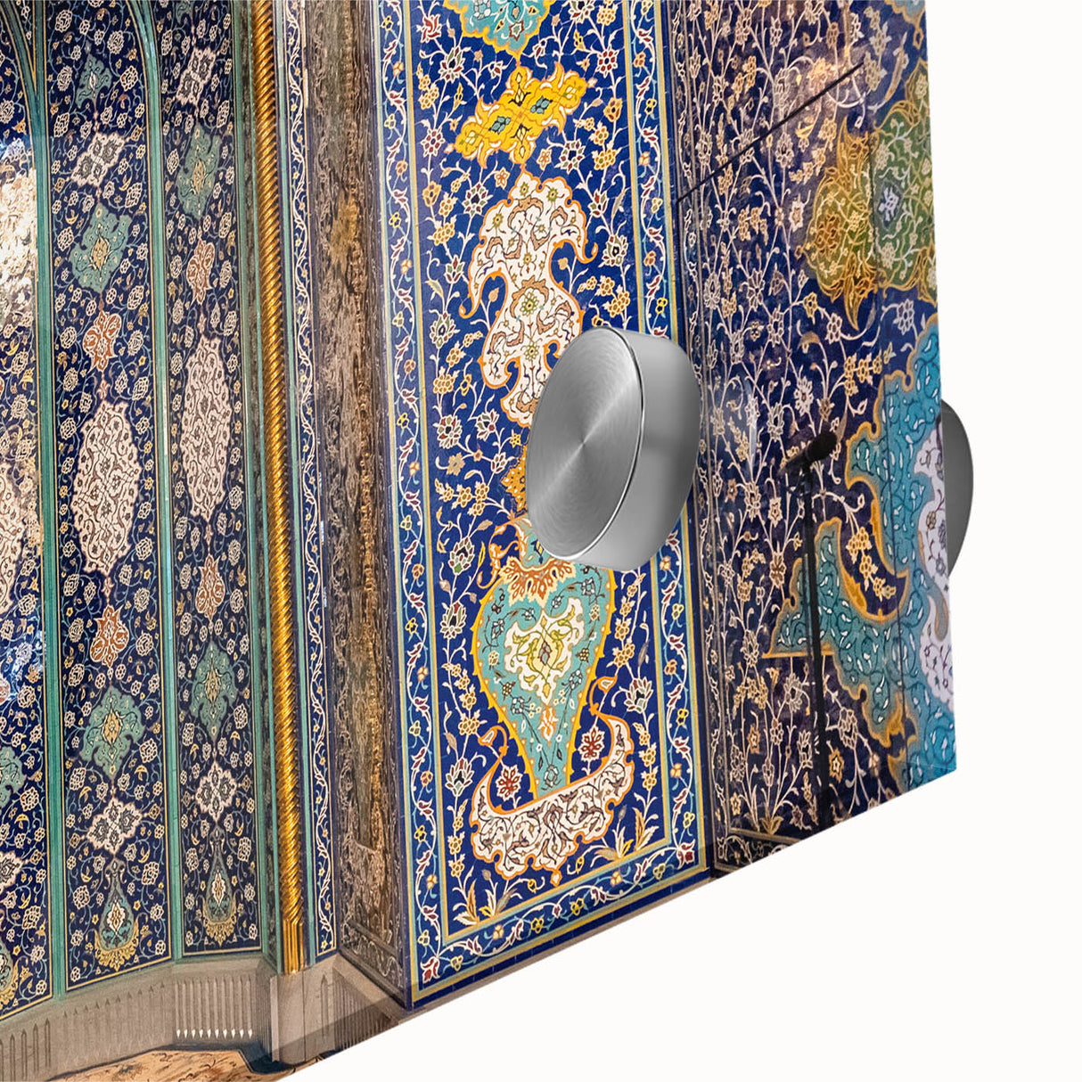 Enhance your home with the intricate beauty of this Oman wall art, showcasing the vibrant tilework and decorative motifs found in traditional Islamic architecture. This high-quality Oman wall art features ornate patterns in rich blues, greens, and golds, creating a striking and elegant piece that brings the craftsmanship of the Middle East into your space.