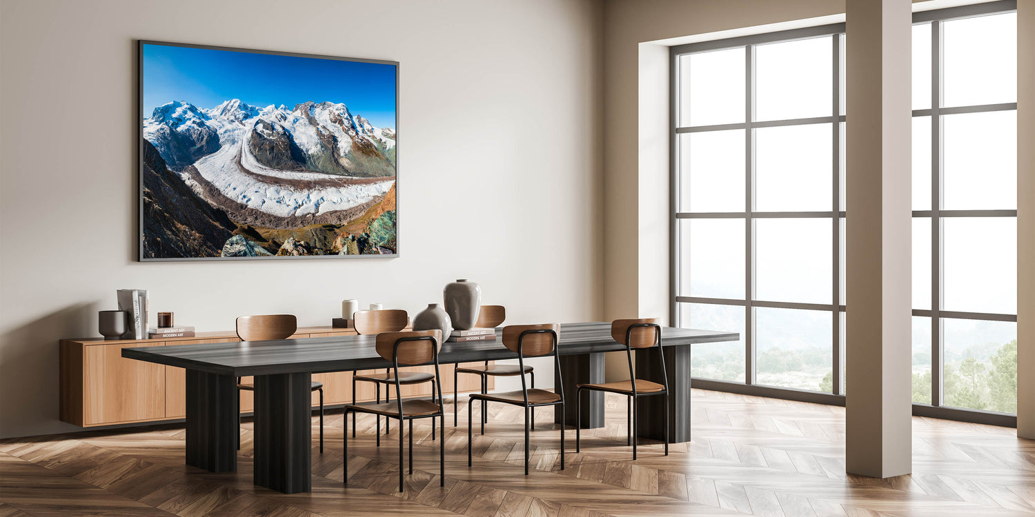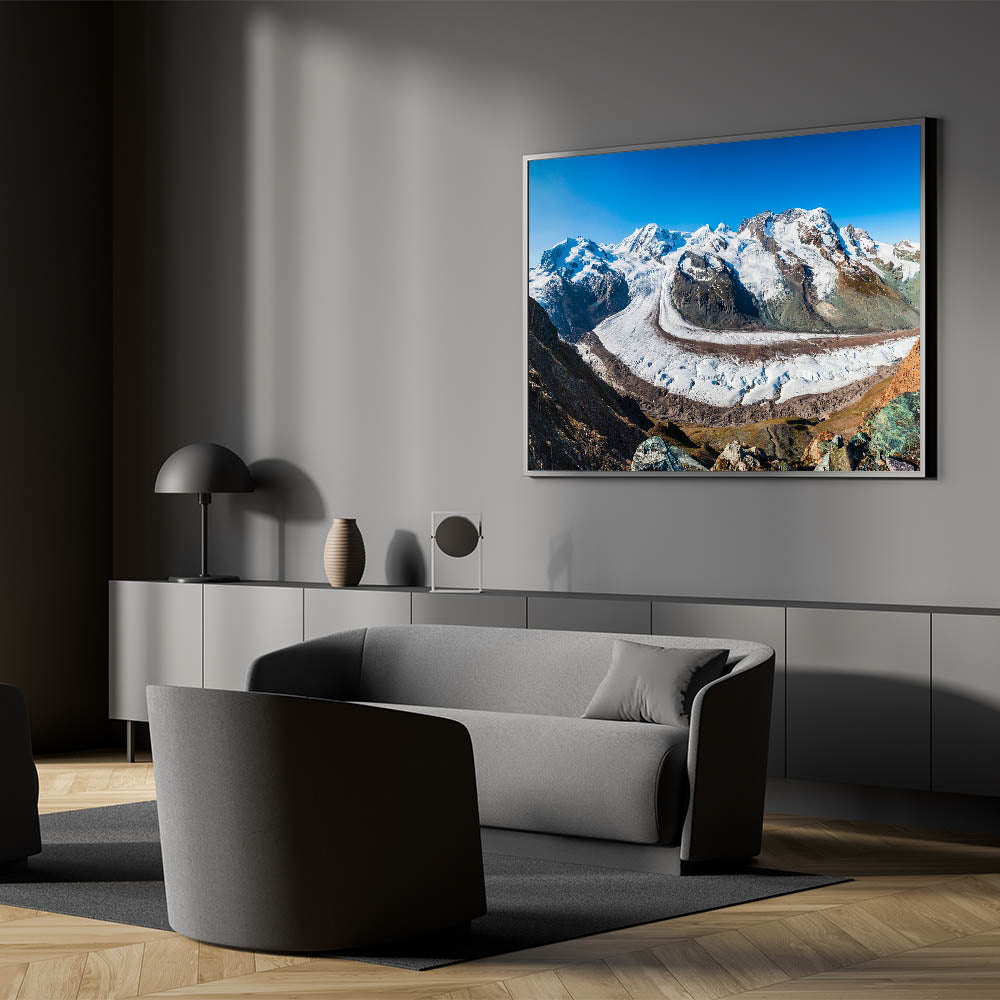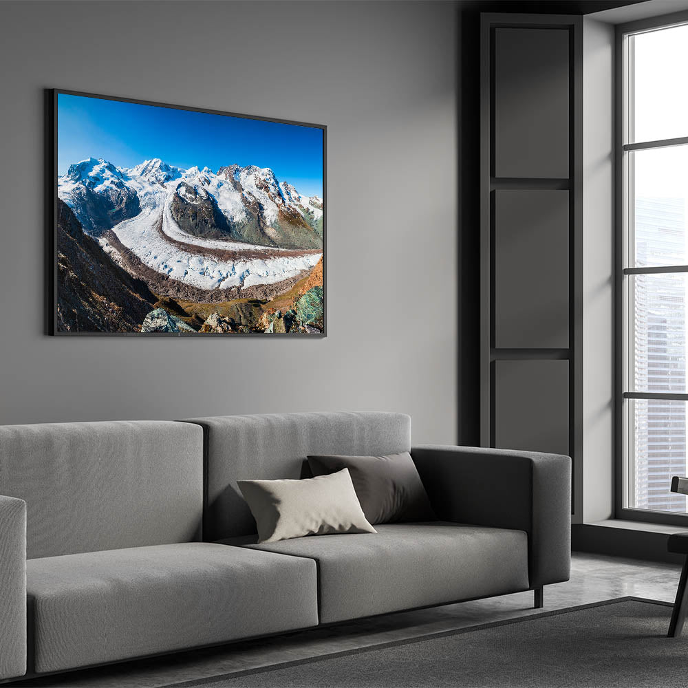 This glacier art piece is a must-have for nature lovers and adventurers alike. Add this stunning panoramic glacier landscape to your collection and enjoy the serene yet powerful presence of the mountains in your home or office.