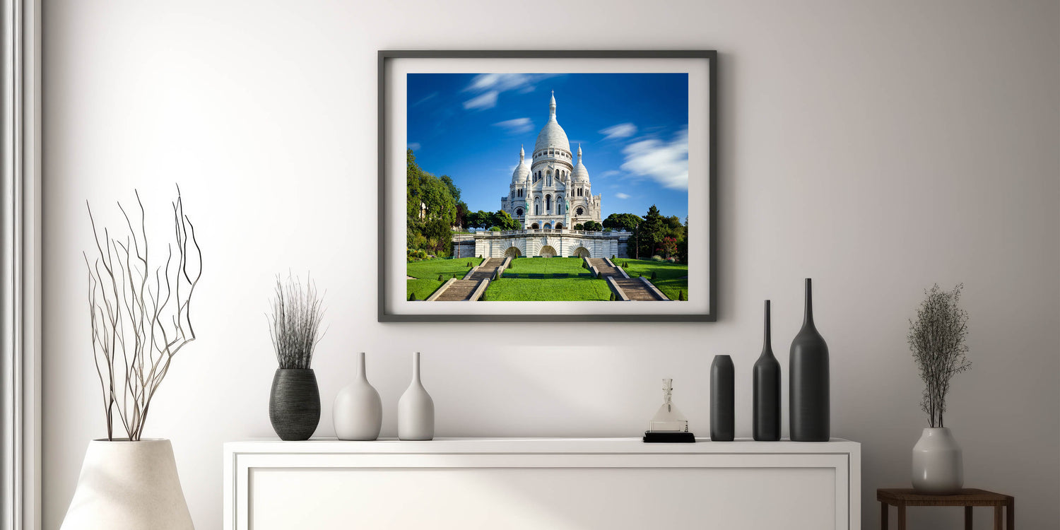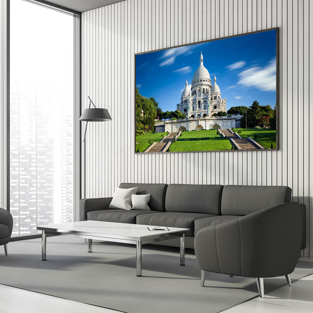 Elevate your living space with this striking beautiful Paris artwork featuring the magnificent Sacré-Cœur Basilica. Set against a vibrant blue sky, this captivating image captures the serene beauty of this iconic Parisian landmark. Whether you're looking to bring high-quality Paris prints into your home or office, this canvas showcases the grandeur and elegance of French architecture at its finest.