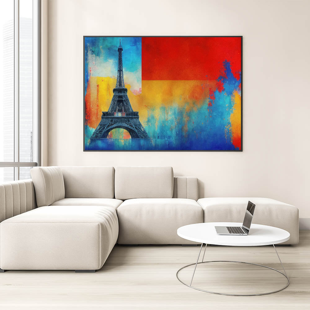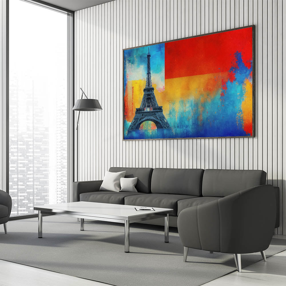 Brighten up your space with this vibrant and colorful depiction of the Eiffel Tower. This striking Paris canvas print combines bold hues of red, yellow, and blue, making it a unique addition to any art collection. The iconic Parisian landmark is set against an abstract, colorful background, creating a modern twist on classic French decor. Perfect for those looking to add an artistic, high-quality Paris print to their home or office.