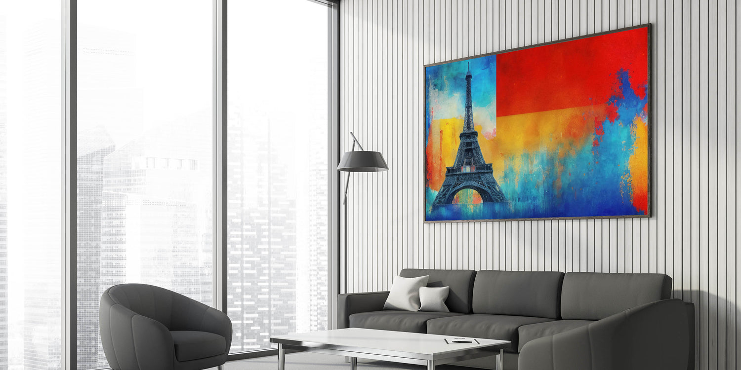 This beautiful Paris artwork is perfect for those who want to add a touch of vibrancy to their space. Ideal as a centerpiece for your living room or as a bold accent piece, this Parisian cityscape painting offers a refreshing take on scenic Paris photography.