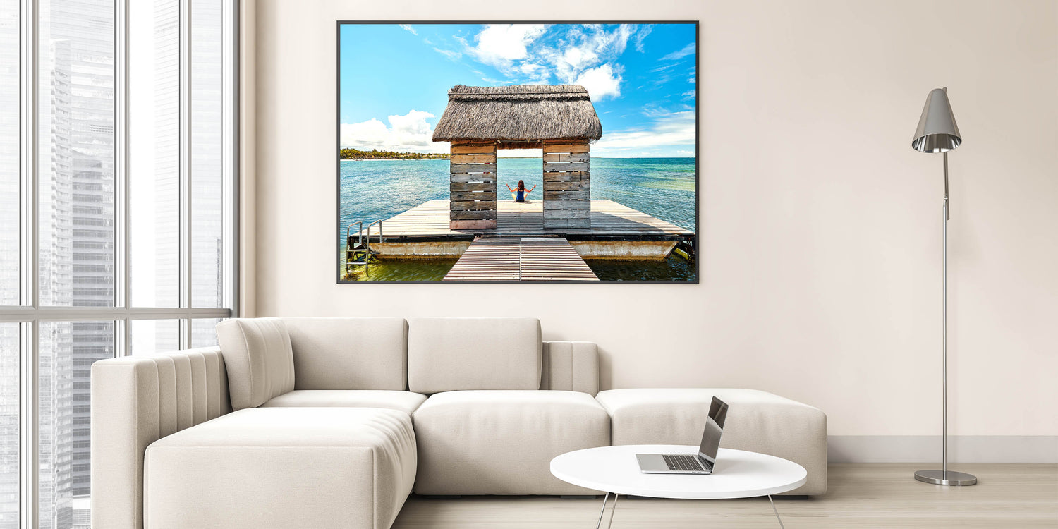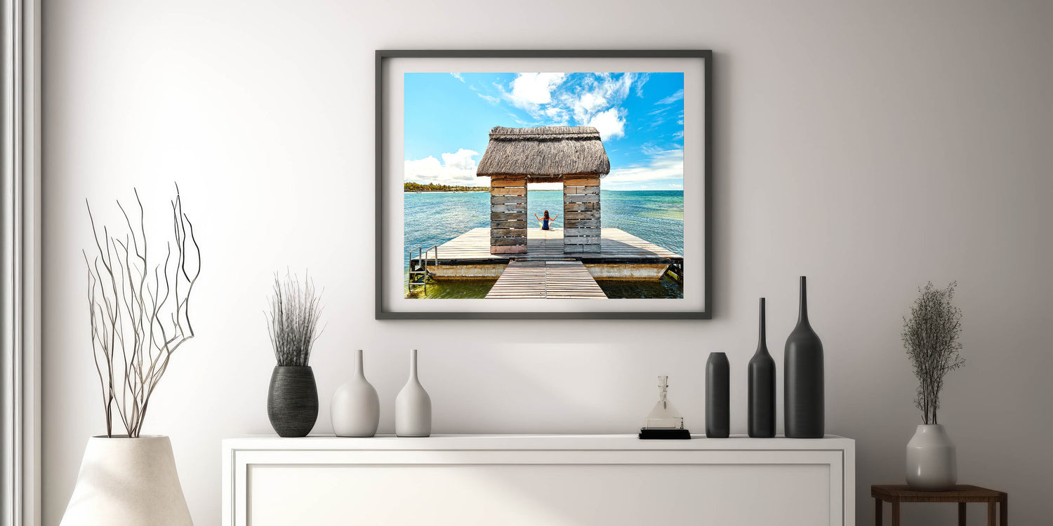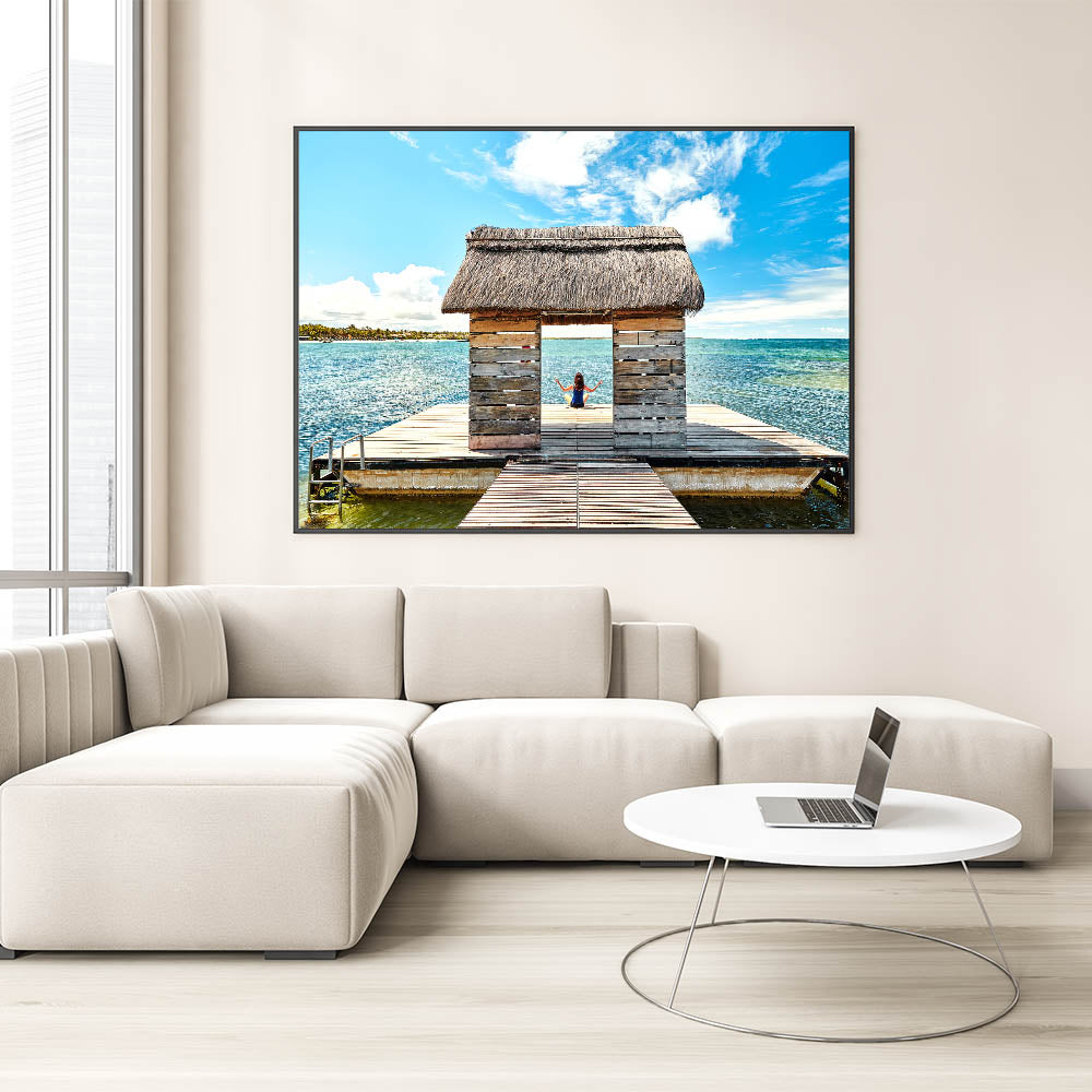 Bring the serene beauty of Mauritius into your living space with this captivating wall art, featuring a tranquil scene of a thatched pavilion by the crystal-clear waters of the Indian Ocean. This piece from our Mauritius Art Collection showcases the island's natural charm and invites a sense of peace and relaxation.