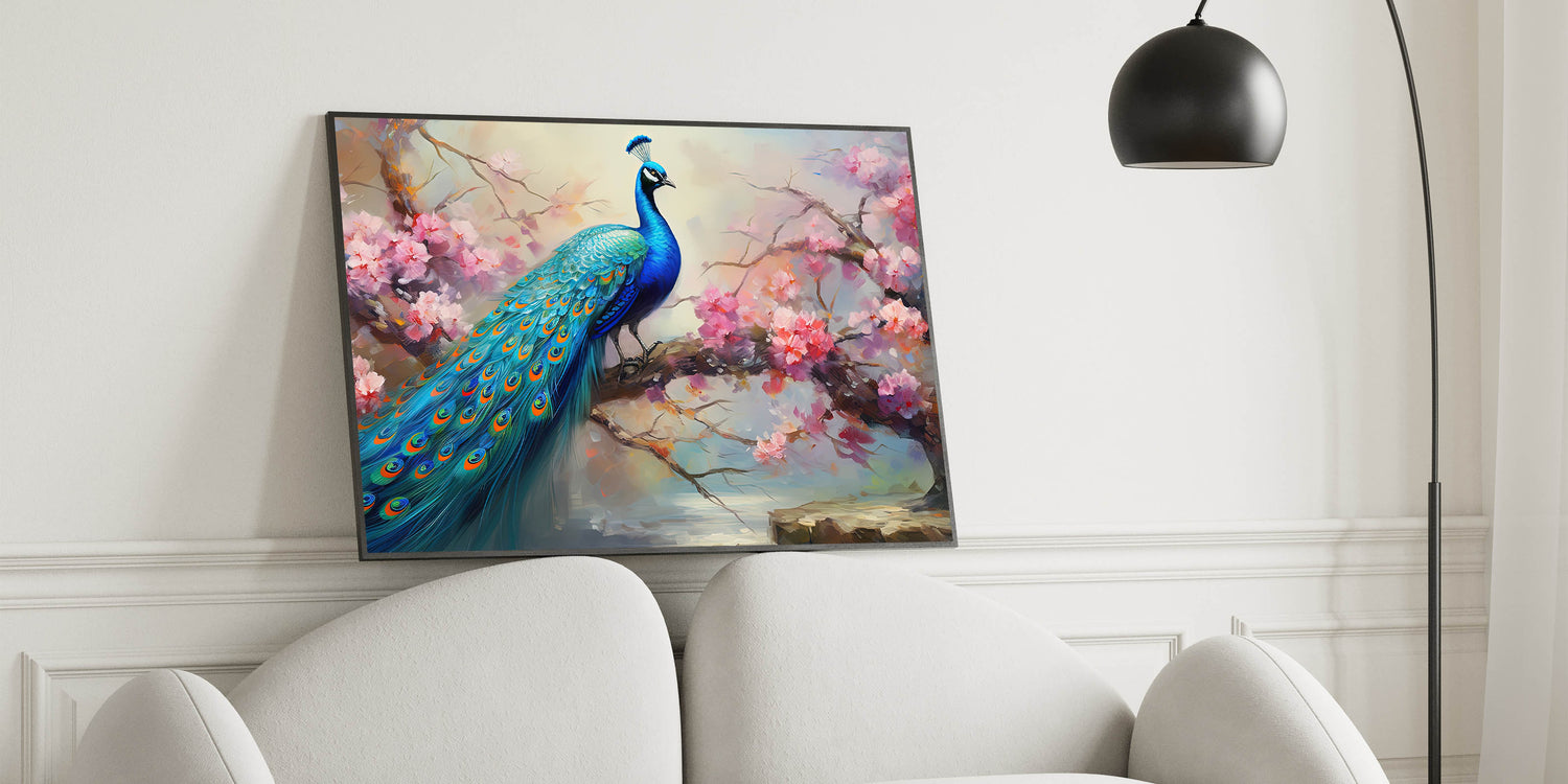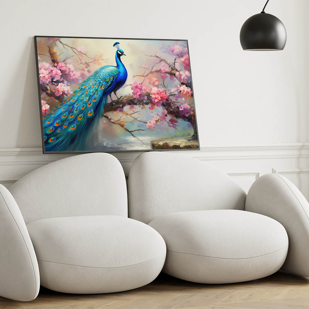 - Vibrant and Lush Design: Features a peacock surrounded by cherry blossoms, with rich colors that bring a burst of life to any room.
