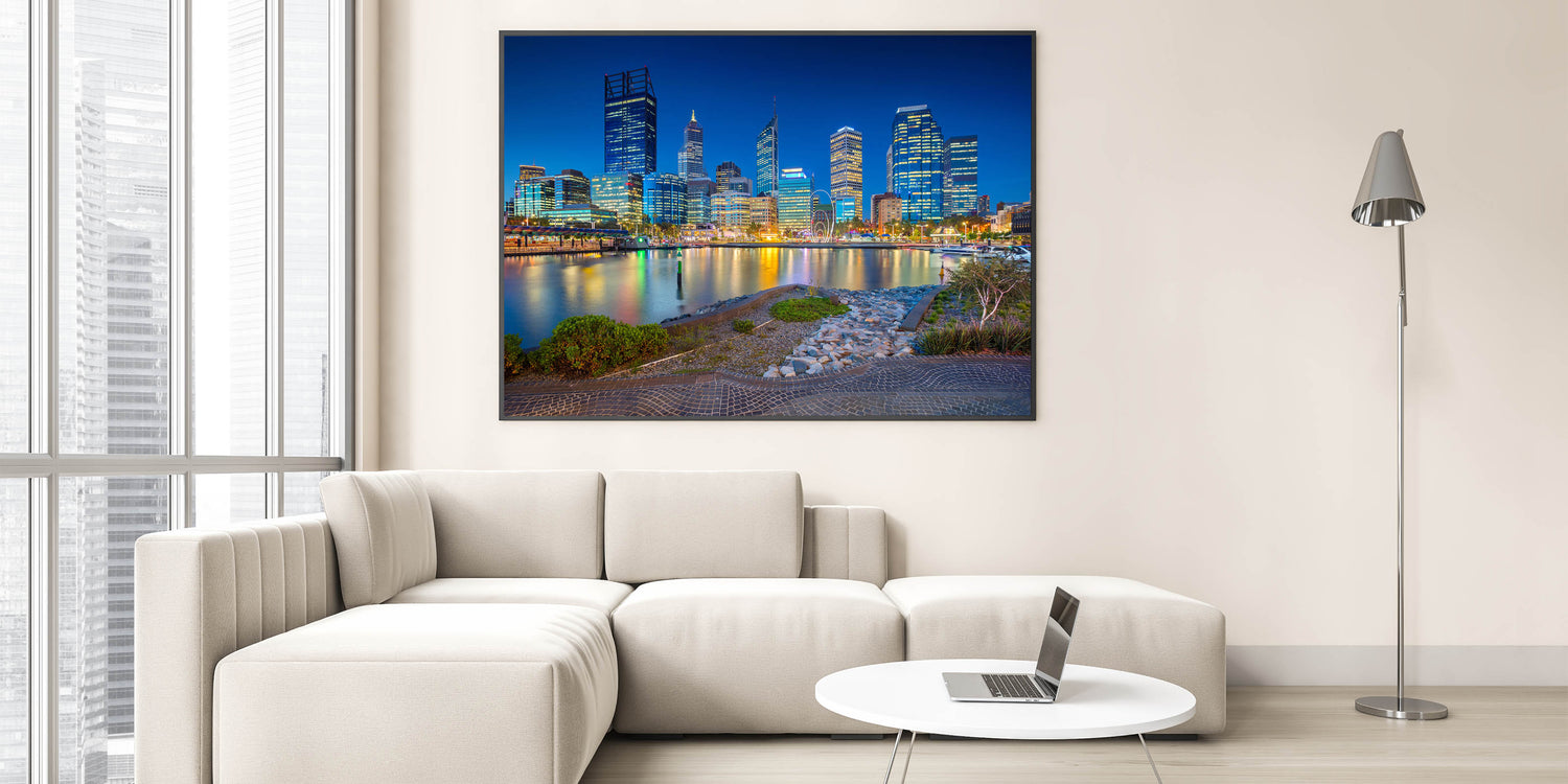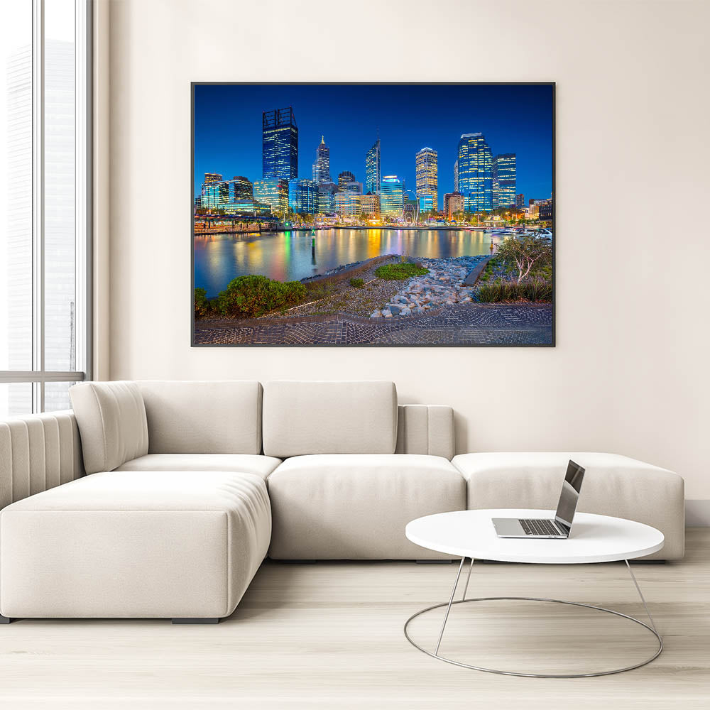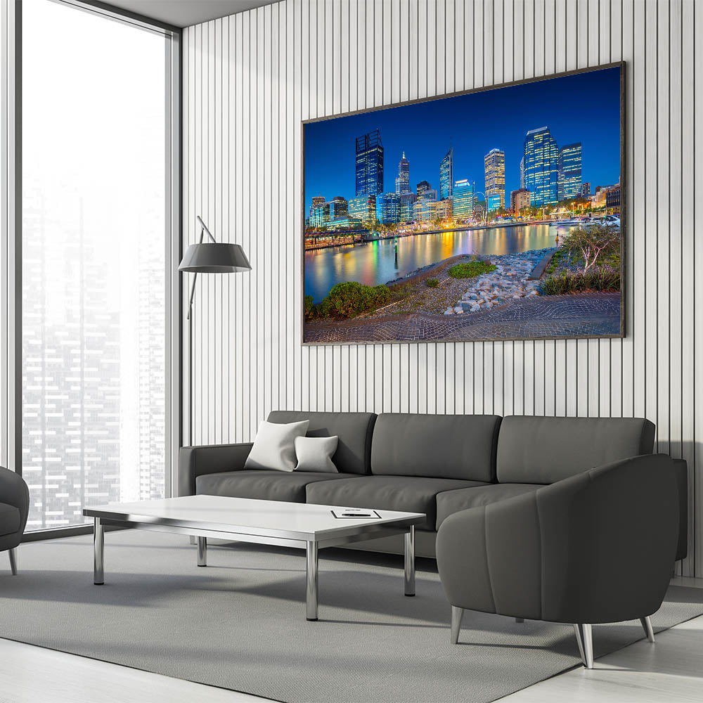 This Perth Landscape Canvas is an eye-catching piece that brings the energy and vibrancy of the city into any space. The night-time reflections and glowing city lights make it a perfect focal point for your decor. Whether you’re a fan of urban photography or looking for a bold statement piece, this Perth Art Print is the perfect addition to your wall.