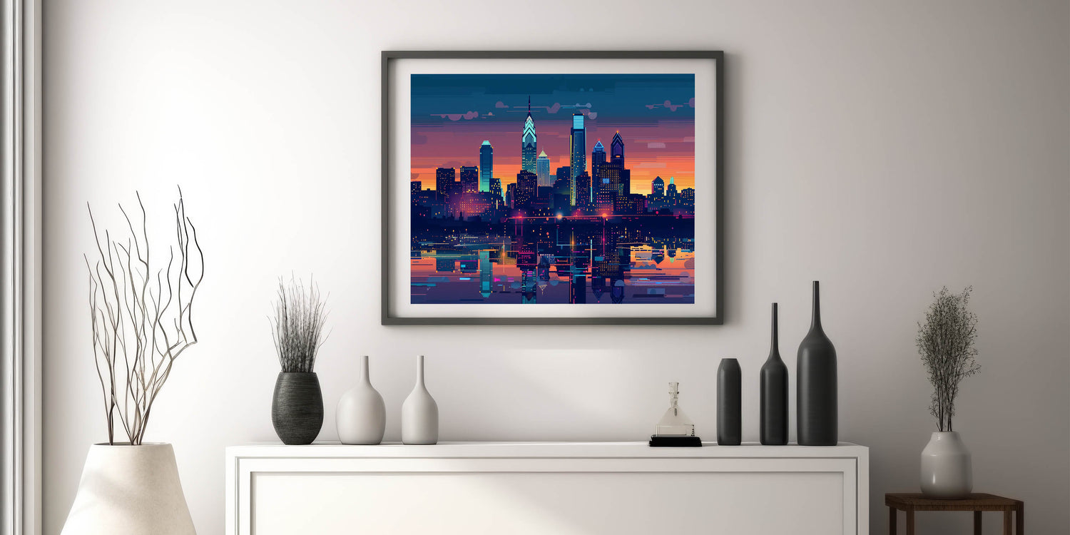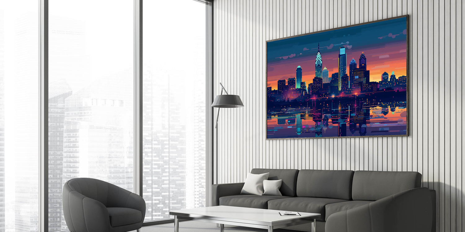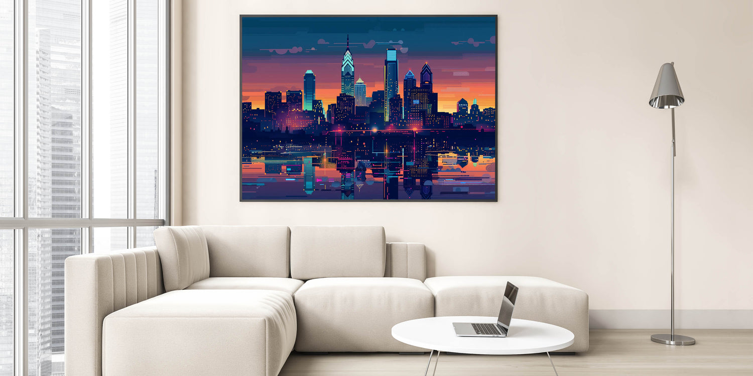 This Philadelphia skyline art is more than just a decorative piece; it’s a statement of modernity and urban energy. Perfect for homes, offices, or contemporary galleries, this artwork will transform any space into a dynamic reflection of Philadelphia's vibrant character. Order now and let this neon-infused cityscape brighten your environment.
