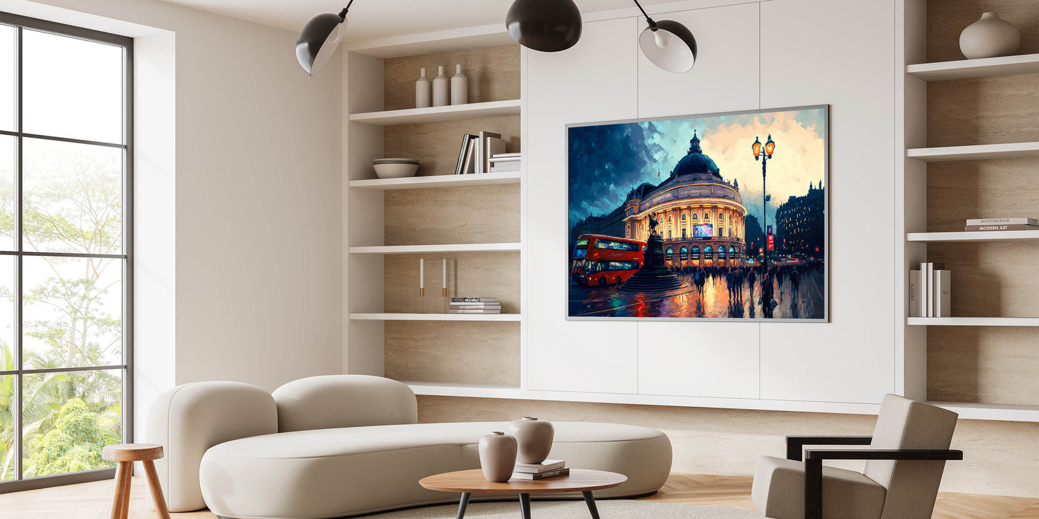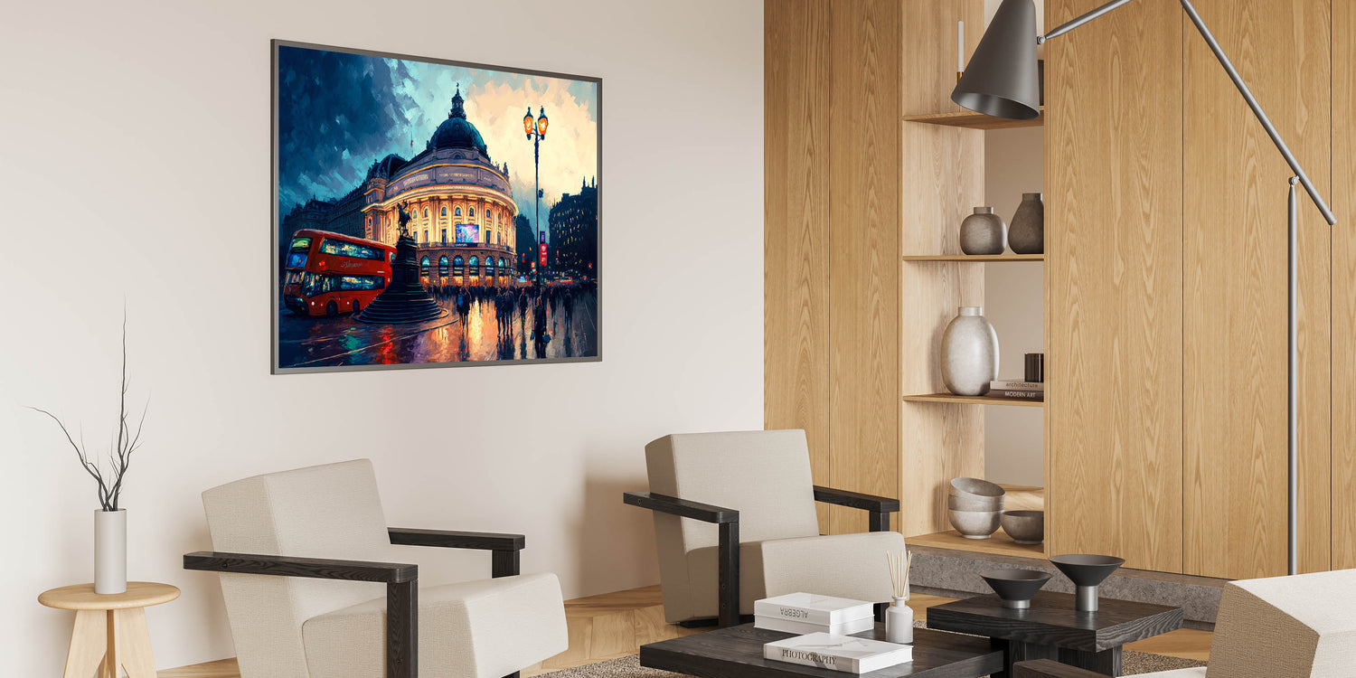 This eye-catching Piccadilly Circus art will transport you to the bustling streets of London, making it a great addition to any modern or classic decor.