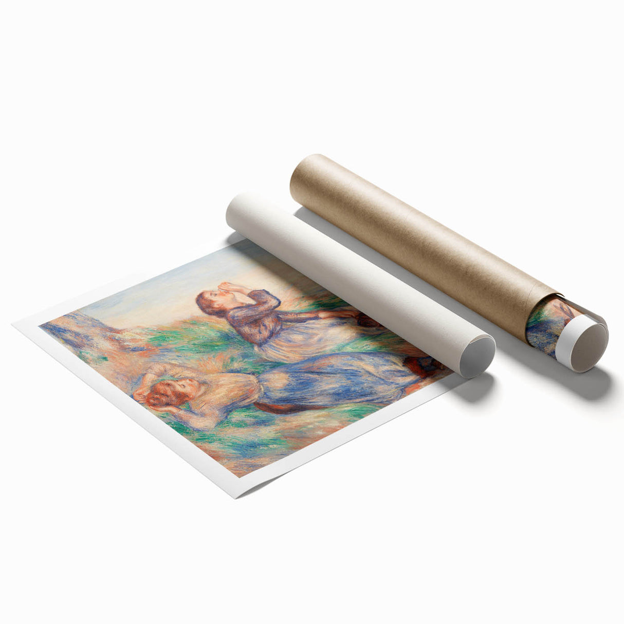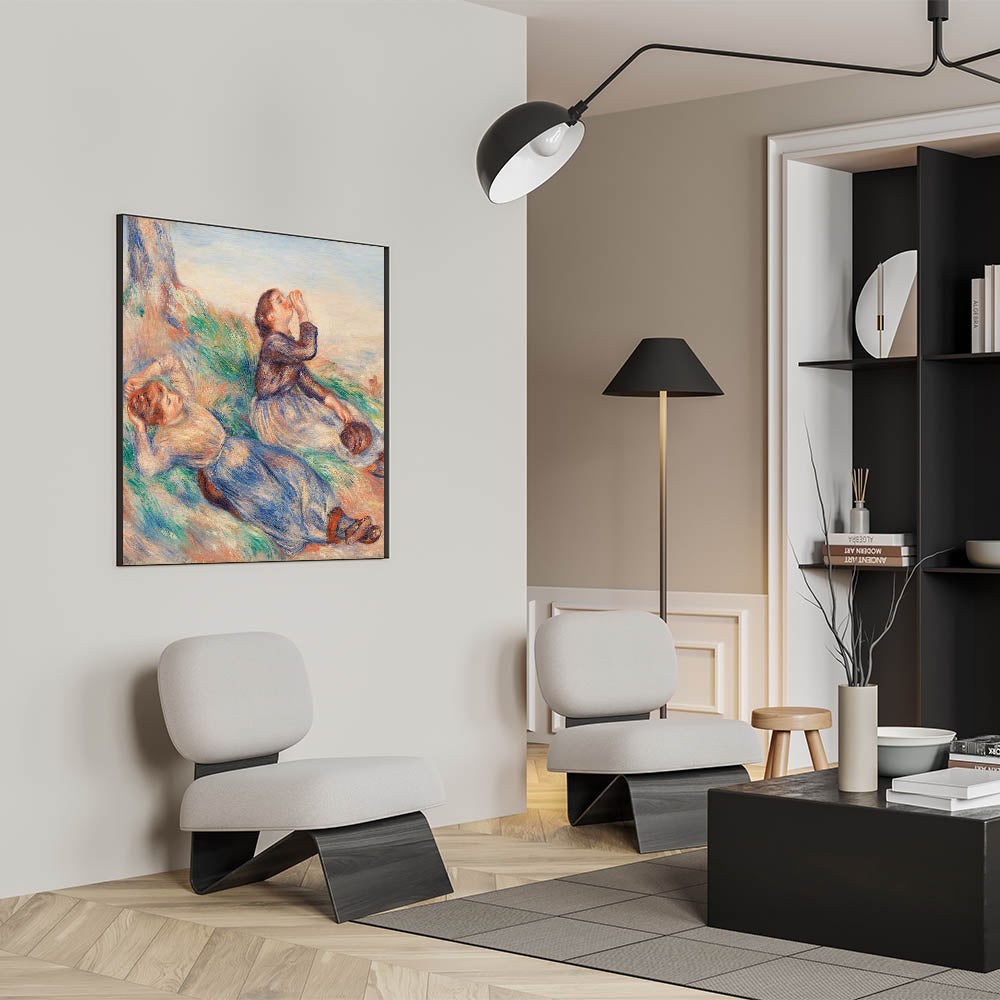 Transform your living space with this exquisite Pierre-Auguste Renoir painting, capturing a tranquil moment of leisure in nature. Renoir’s vibrant brushwork brings to life the soft, flowing movements of the figures and the gentle landscape in this Impressionist masterpiece. The painting showcases the timeless elegance of Renoir’s work, with its delicate interplay of light, color, and texture that characterizes French Impressionism.