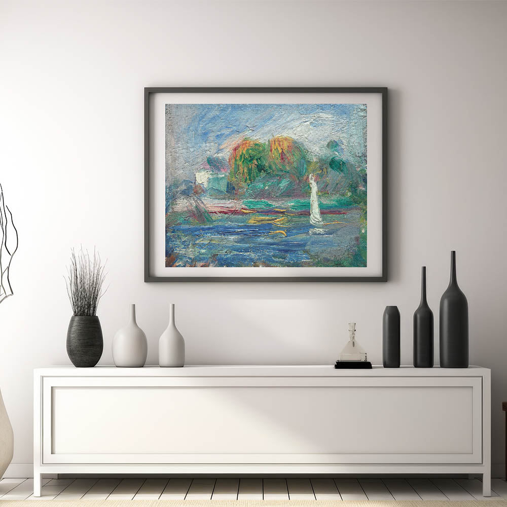 Step into the world of French Impressionism with this vibrant landscape by Pierre-Auguste Renoir, featuring a scenic riverbank with sailboats gently drifting on the water. The bold brushstrokes and rich color palette capture the natural beauty of the outdoors, showcasing Renoir’s unparalleled ability to depict captivating landscapes. This piece embodies Renoir’s vibrant brushwork, where the interplay of light and shadow brings the scene to life. Perfect for those who admire the timeless elegance of Renoir's paintings, this print infuses any room with the beauty of nature and the charm of Impressionist art.