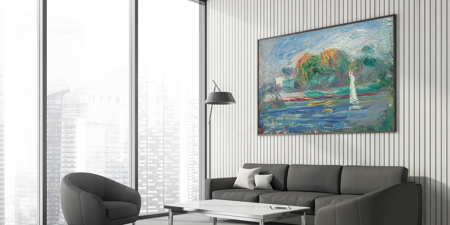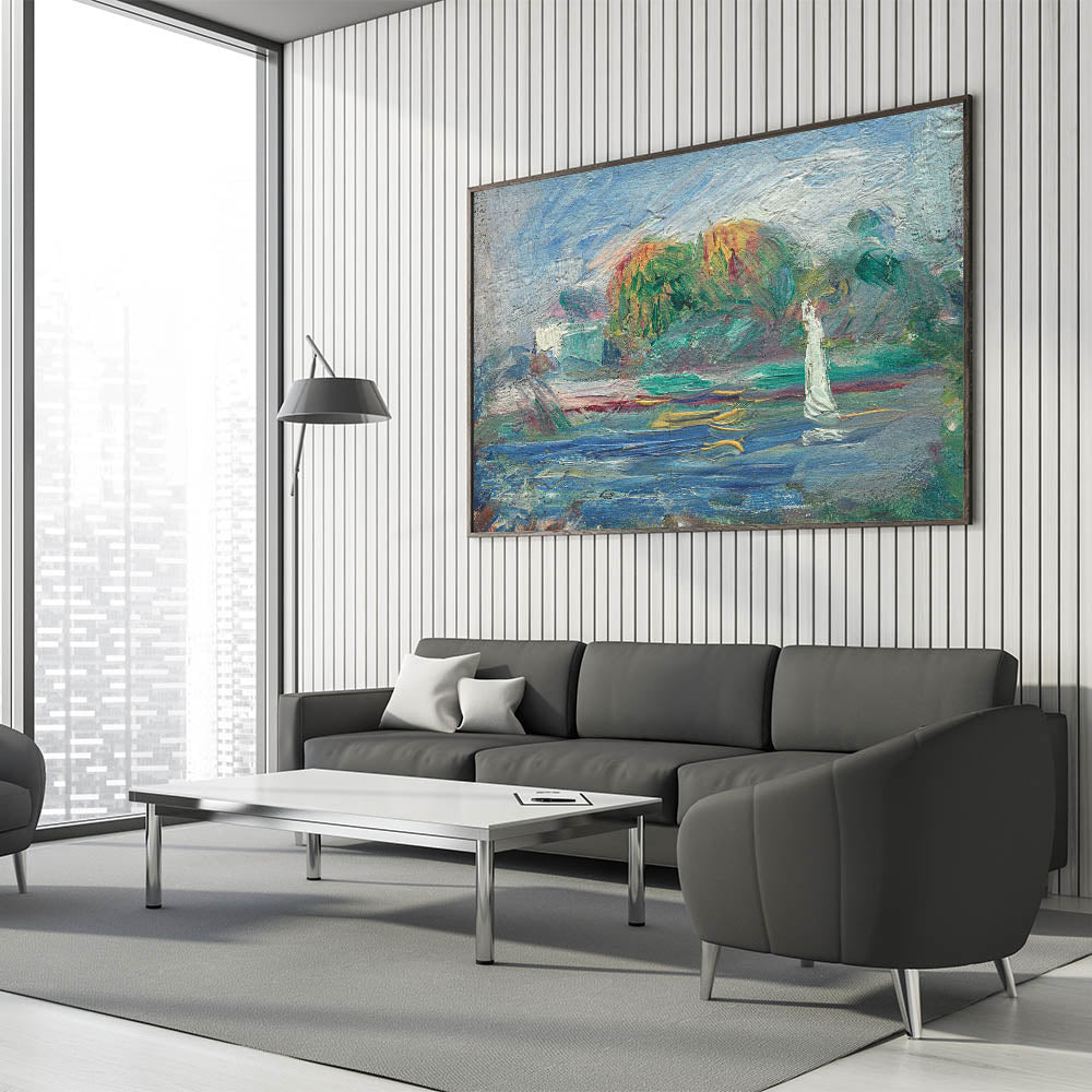 Bring the serene beauty of Renoir’s riverside landscape into your home, where nature’s vibrant colors and calming waters create a peaceful escape.