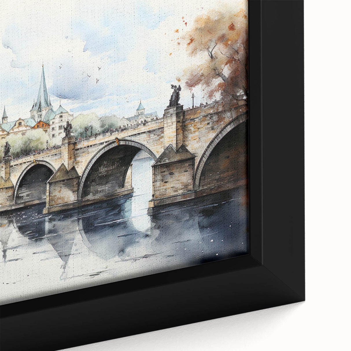 - Watercolor Technique: The delicate watercolor approach captures the serene beauty of Prague in autumn, making it a unique piece.