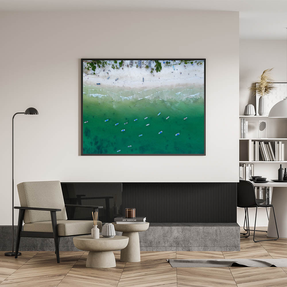 Quintana Roo Wall Art – Beach and Boats Canvas with Aerial View