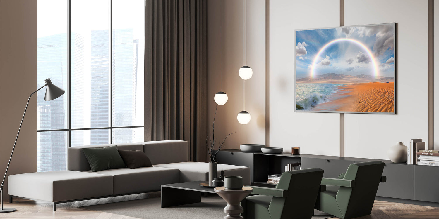 - Vivid and high-quality colors that highlight the vibrant rainbow and natural landscape.
