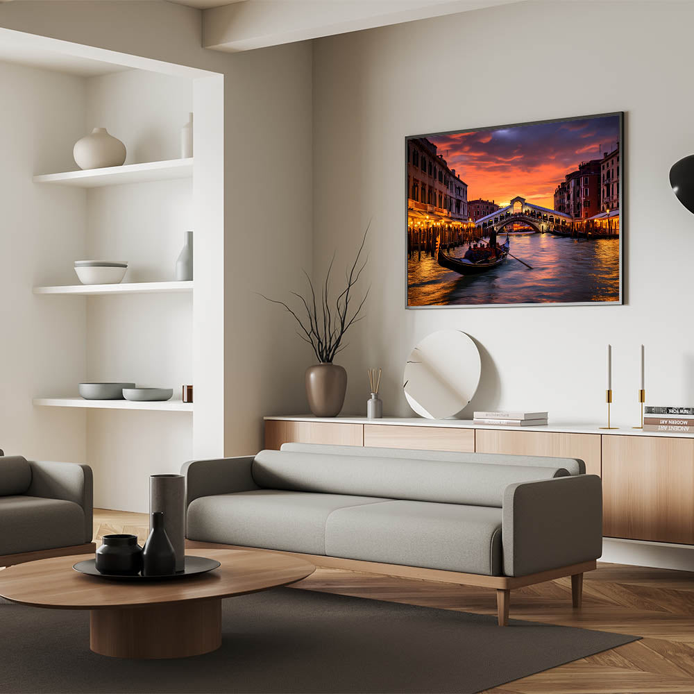 This scenic gondola view invites you to experience the magic of Venice at sunset, where every corner reveals a new story. Perfect for lovers of travel, culture, and art, this piece will bring warmth and sophistication to any room in your home.