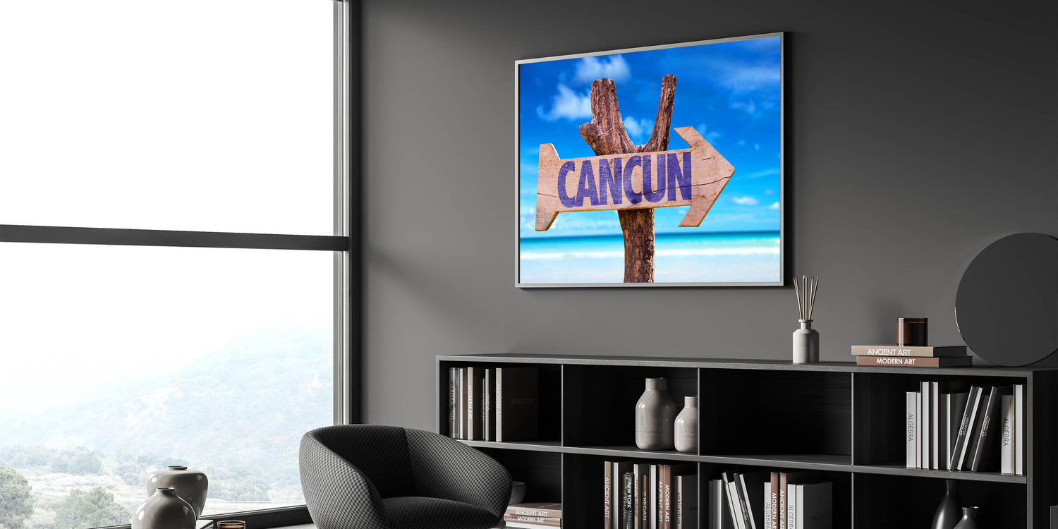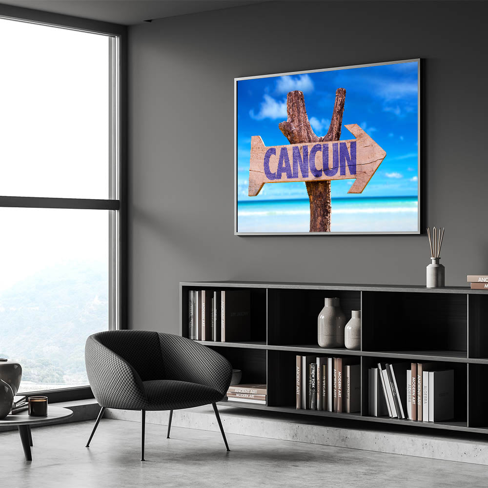 - Rustic Cancun sign photography that adds a touch of adventure and coastal vibes to any room.