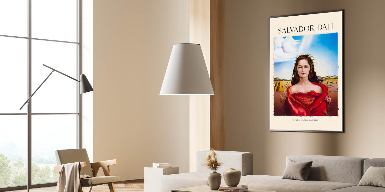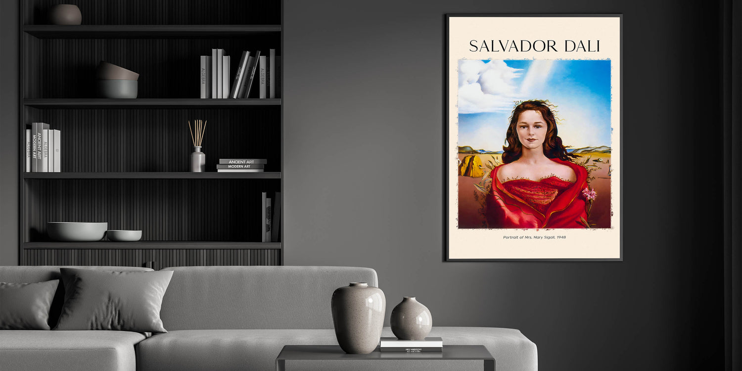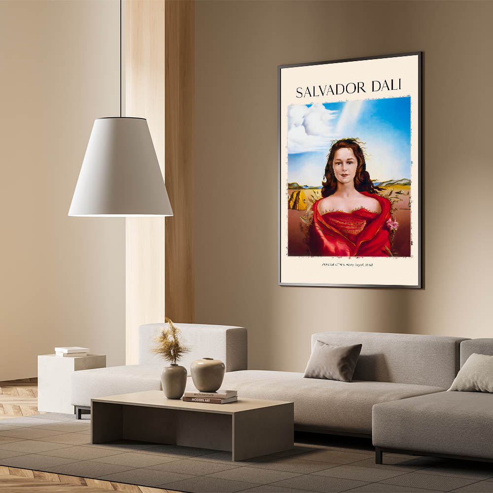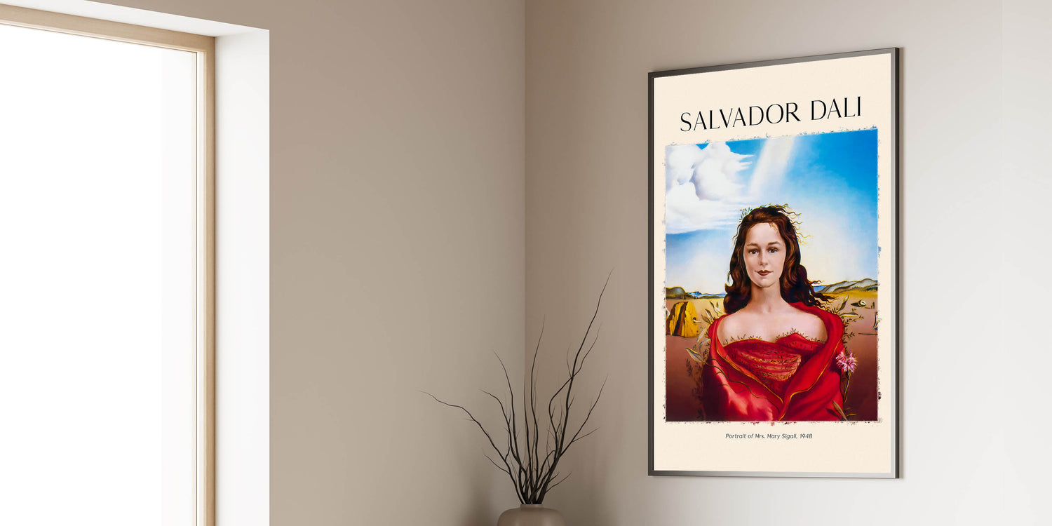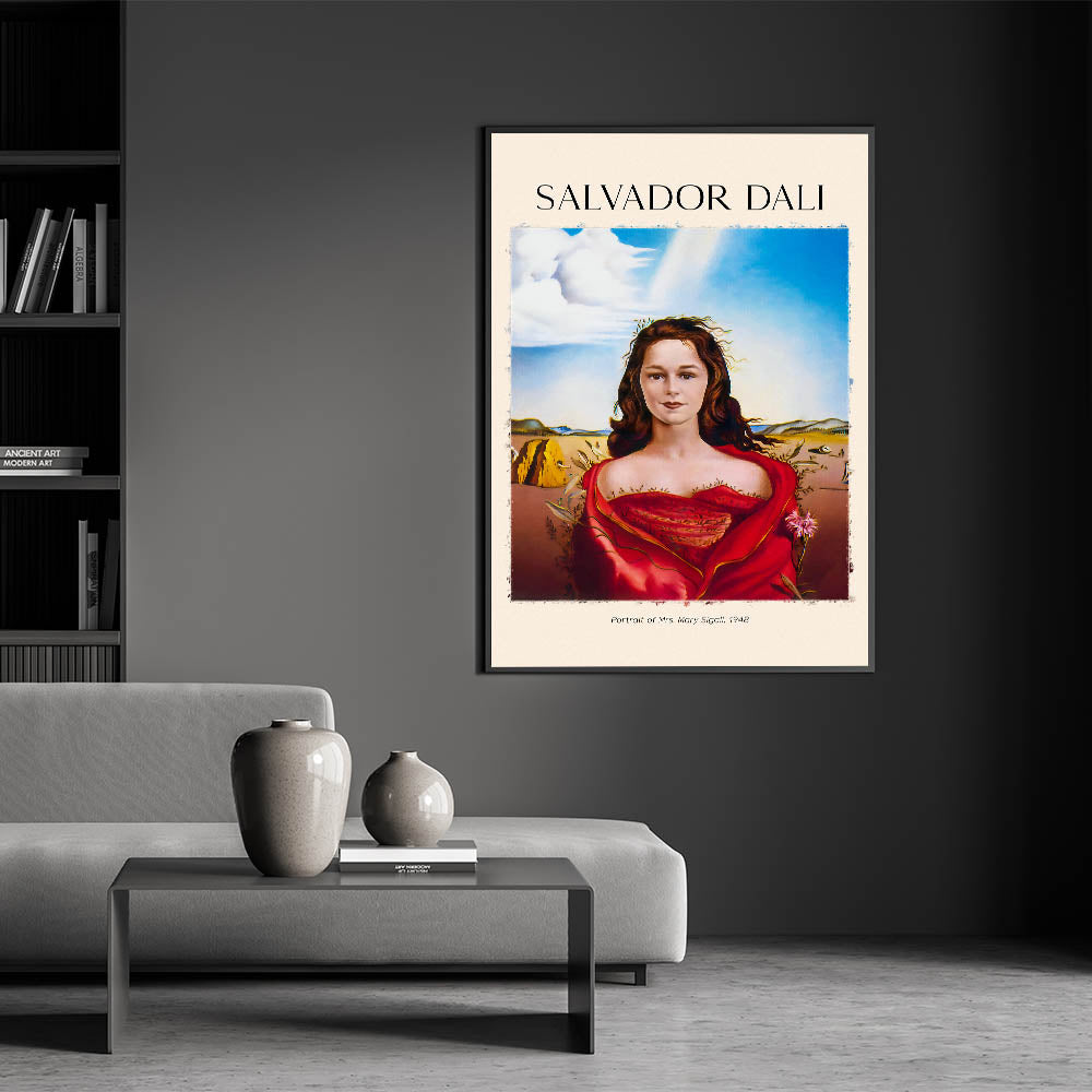 Bring home the surrealist brilliance of Salvador Dali with "Portrait of Mrs. Mary Sigall, 1948." This vibrant portrait is a testament to Dali’s mastery of surrealism and symbolism, offering a striking blend of realism and imaginative expression. The subject’s serene expression, set against an otherworldly landscape, makes this piece a captivating focal point for any space.