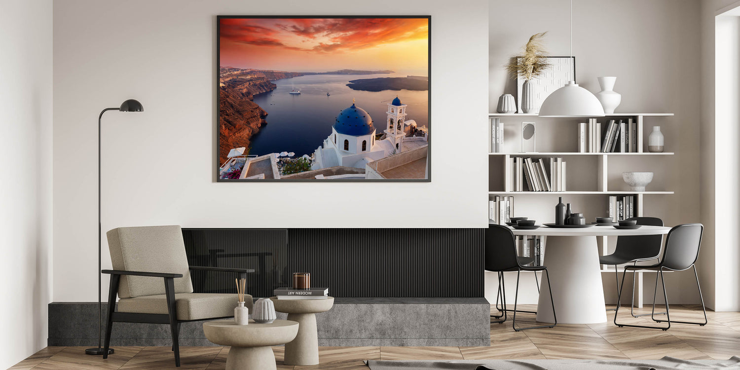 Santorini Wall Art - Scenic Santorini Prints with Sunset Horizon