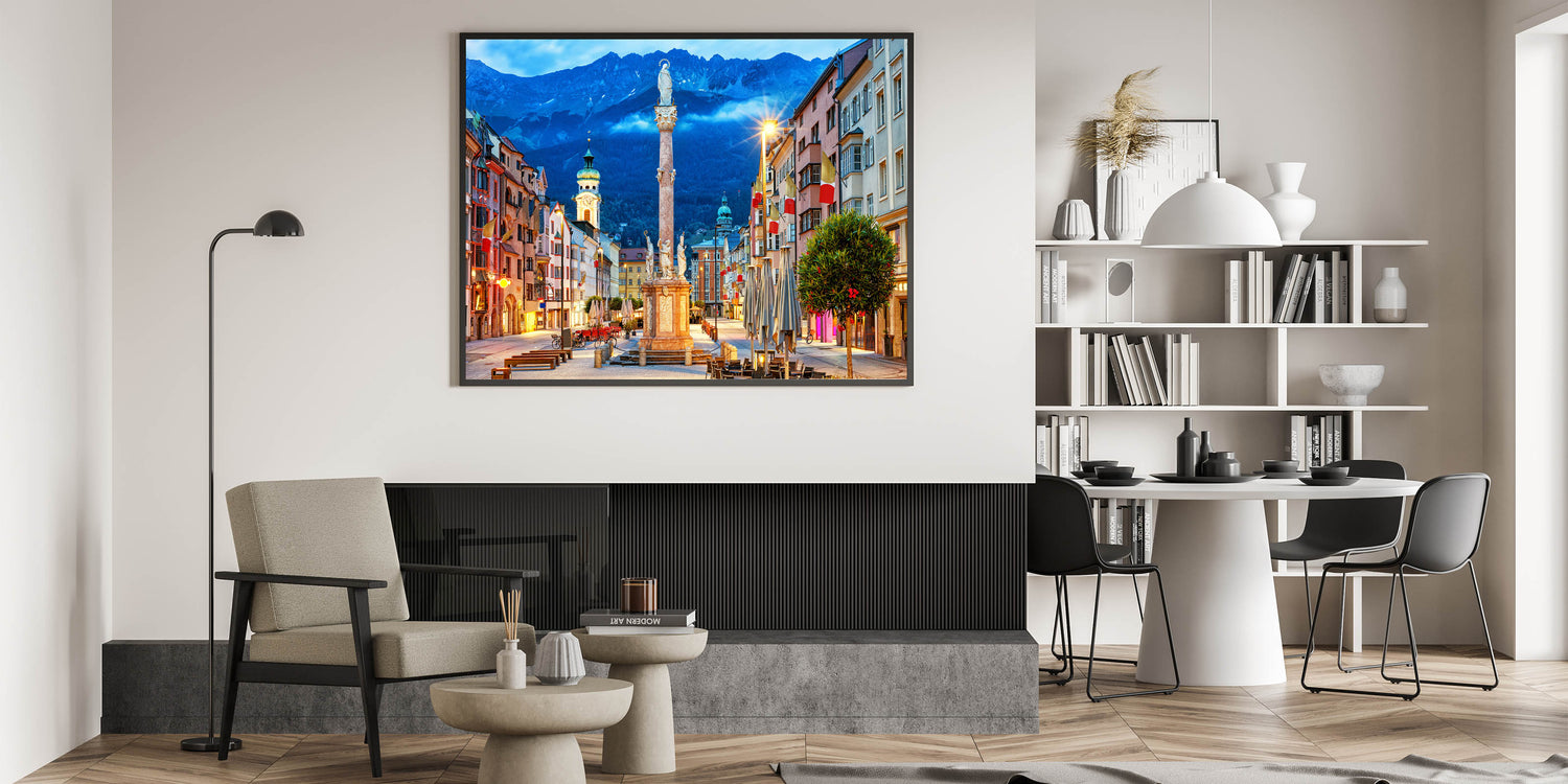 - Art Style: Austrian landscape photography featuring Innsbruck’s historic city center