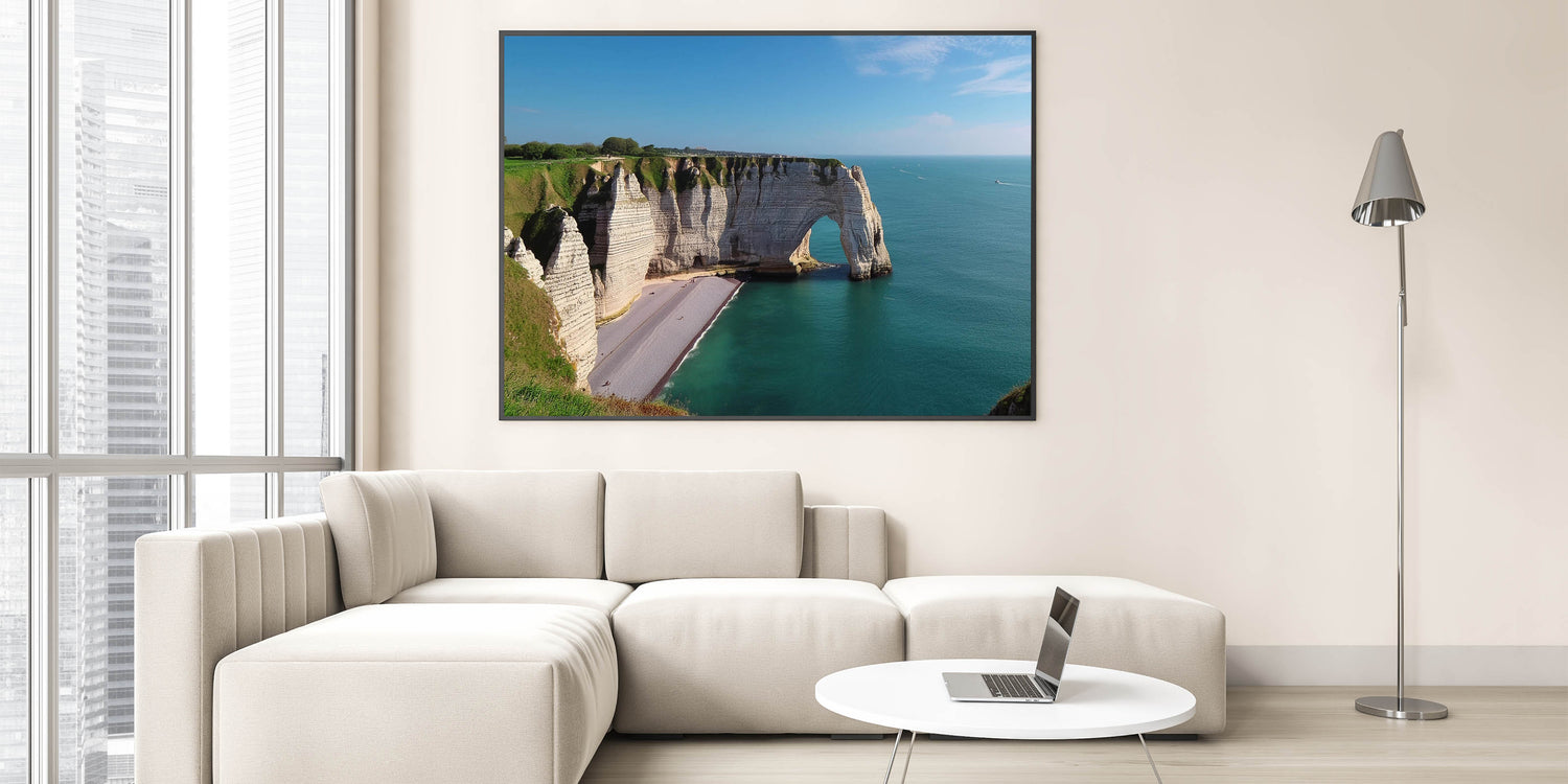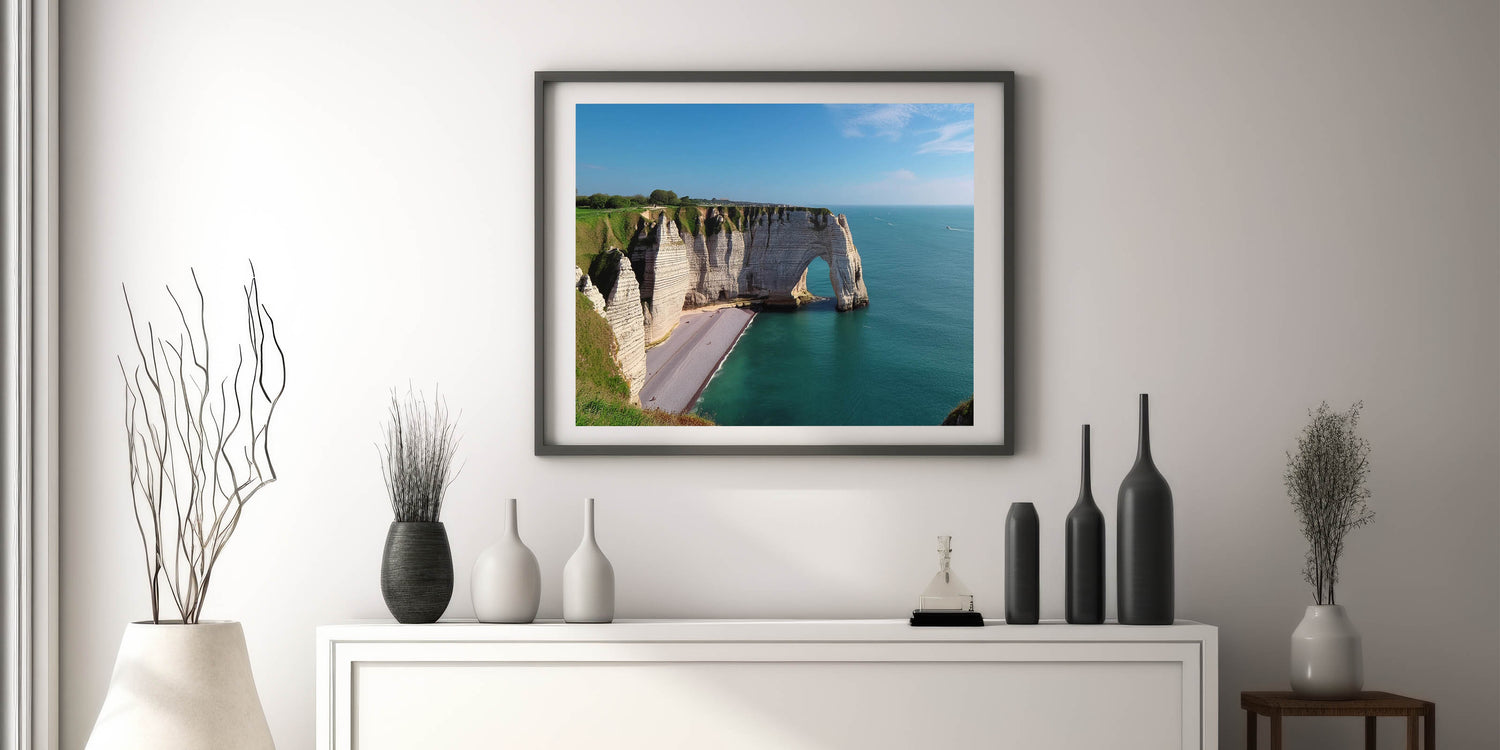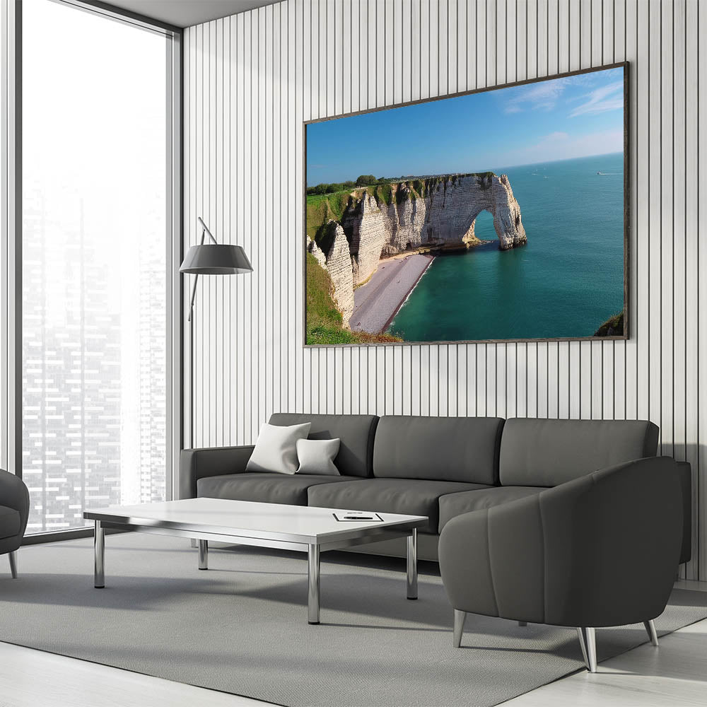 Enhance your living space with this "Coastal Arch Cliffs Artwork," perfect for creating a serene and refreshing atmosphere that will inspire relaxation and bring the beauty of the outdoors into your home.