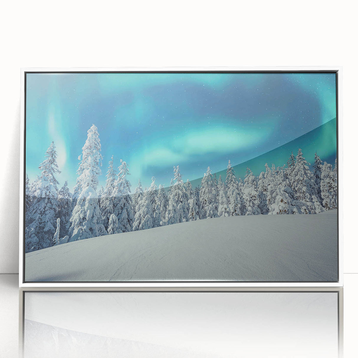 Step into the serene beauty of Finland’s winter wonderland with this stunning Scenic Finland Art. Featuring snow-laden trees under the captivating glow of the Northern Lights, this artwork is a breathtaking representation of Nordic landscapes. The vibrant sky and pristine snowy forest make this Finnish Nature Canvas an excellent addition to any room, bringing the magic of Finland into your home.