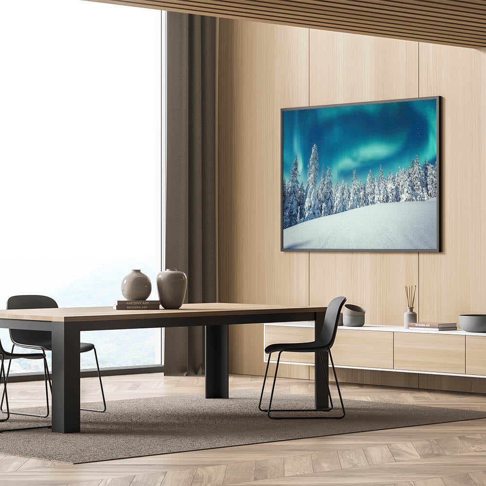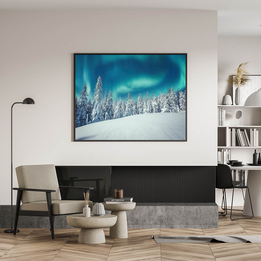 Scenic Finland Art – Winter Forest & Northern Lights Landscape Print