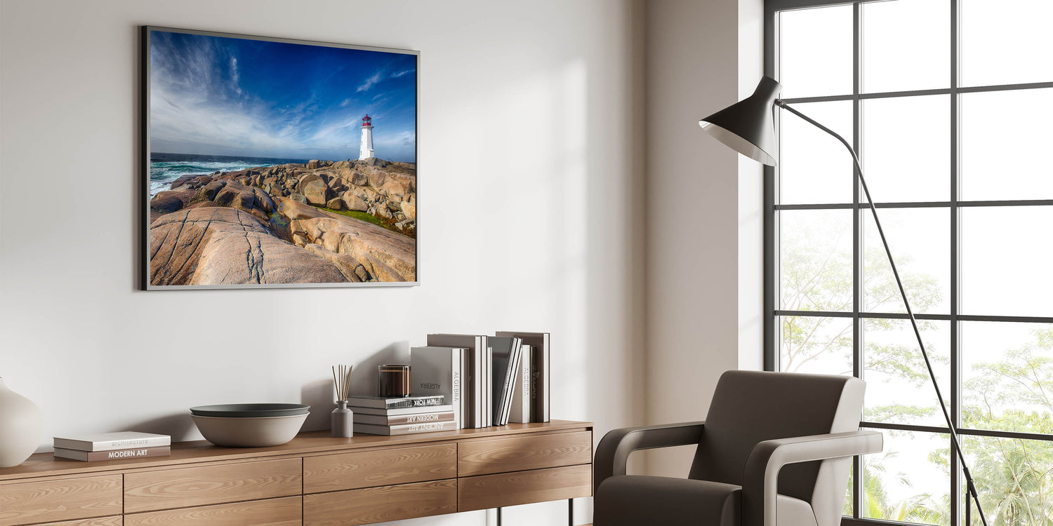 Enhance your space with this iconic Nova Scotia lighthouse art, celebrating the stunning Atlantic coast and maritime scenery. Whether you live by the sea or simply admire the beauty of coastal landscapes, this art piece will evoke feelings of tranquility and adventure, making it a standout addition to your home decor.