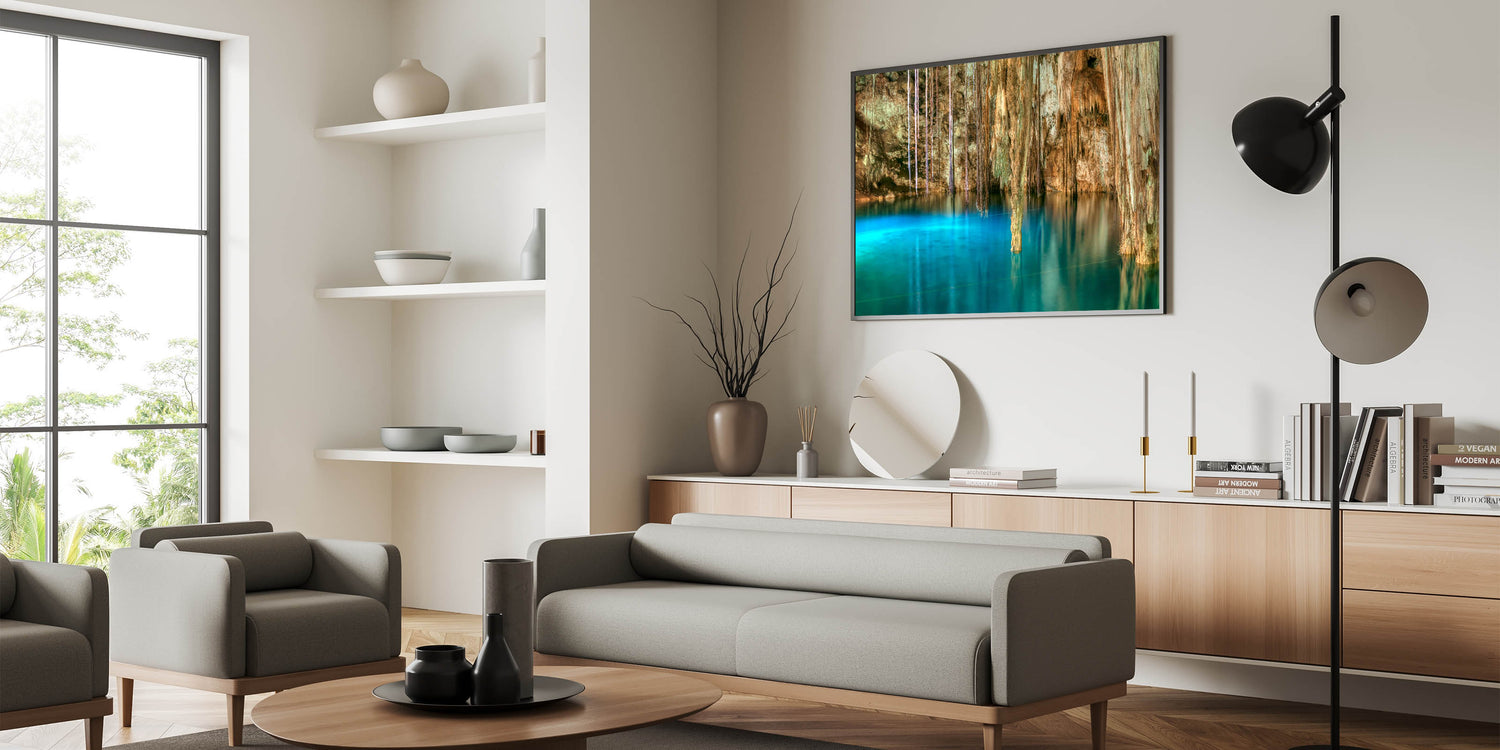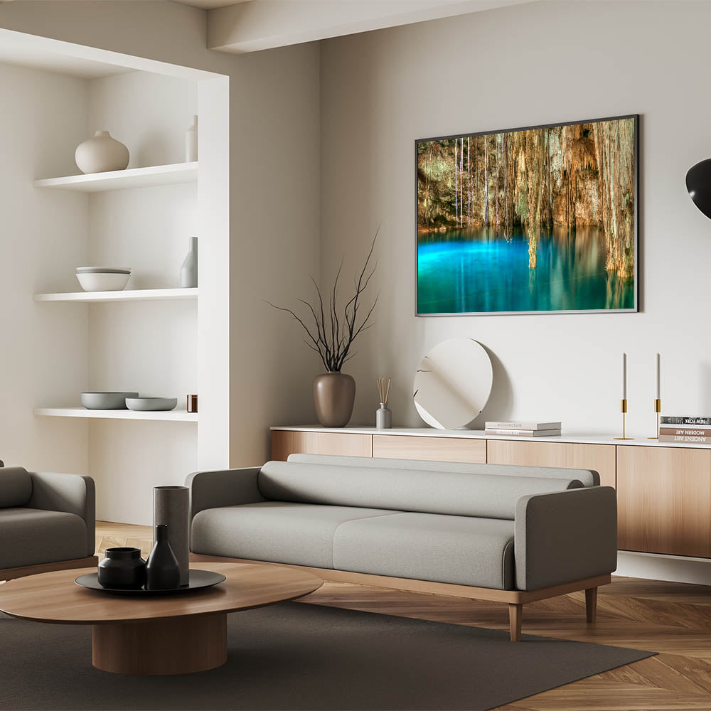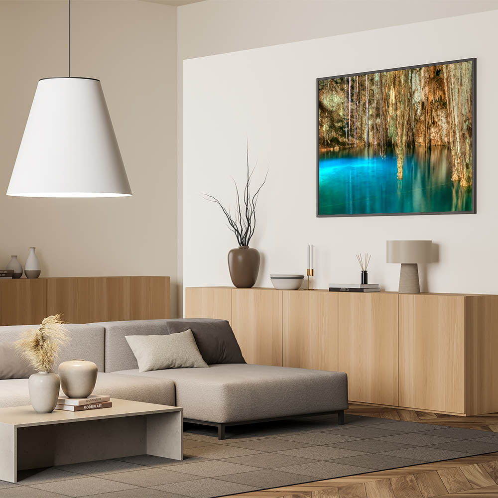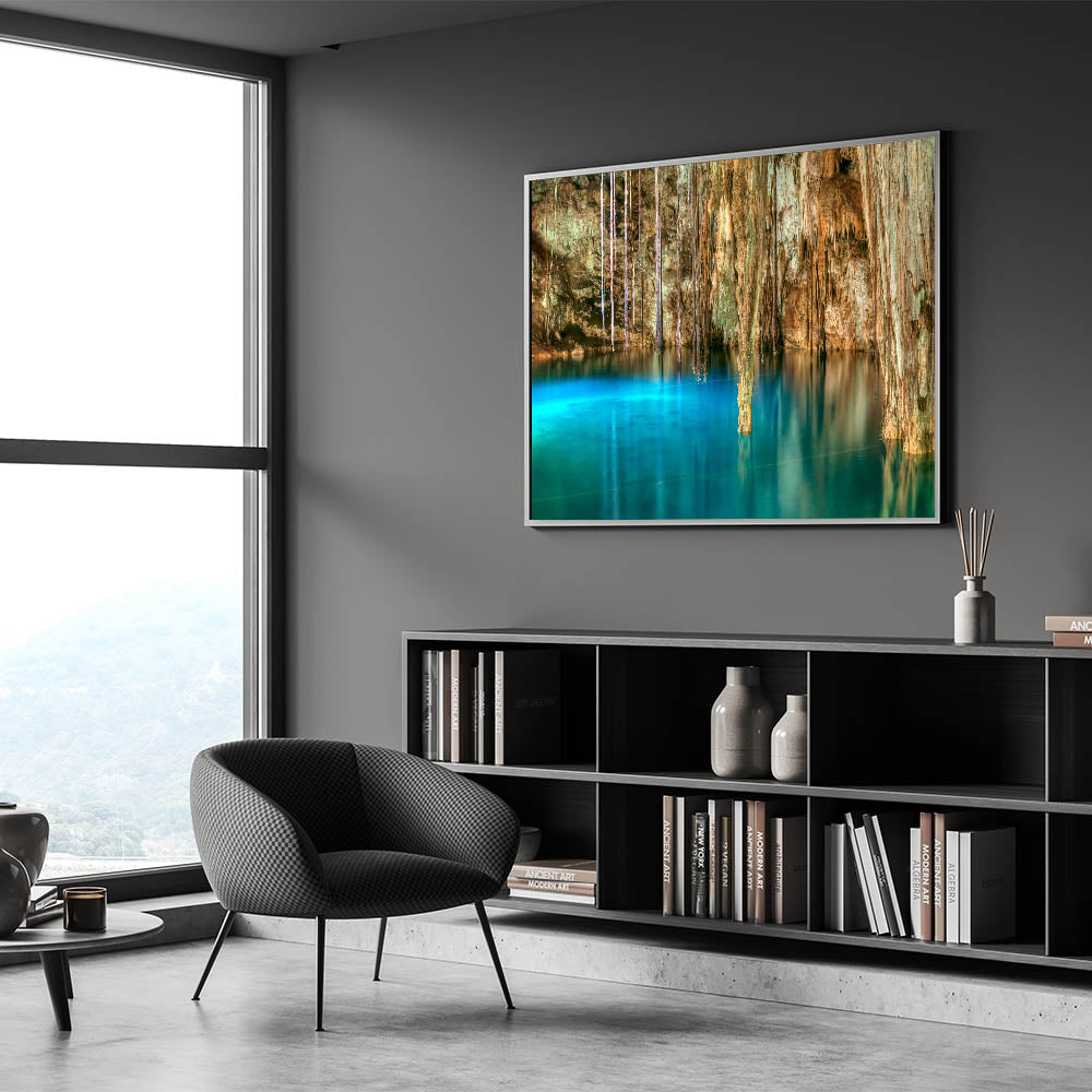• Perfect for home decor, offering a stunning view of Yucatan’s cenotes and nature photography.