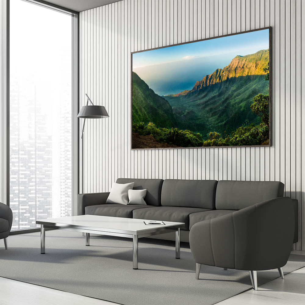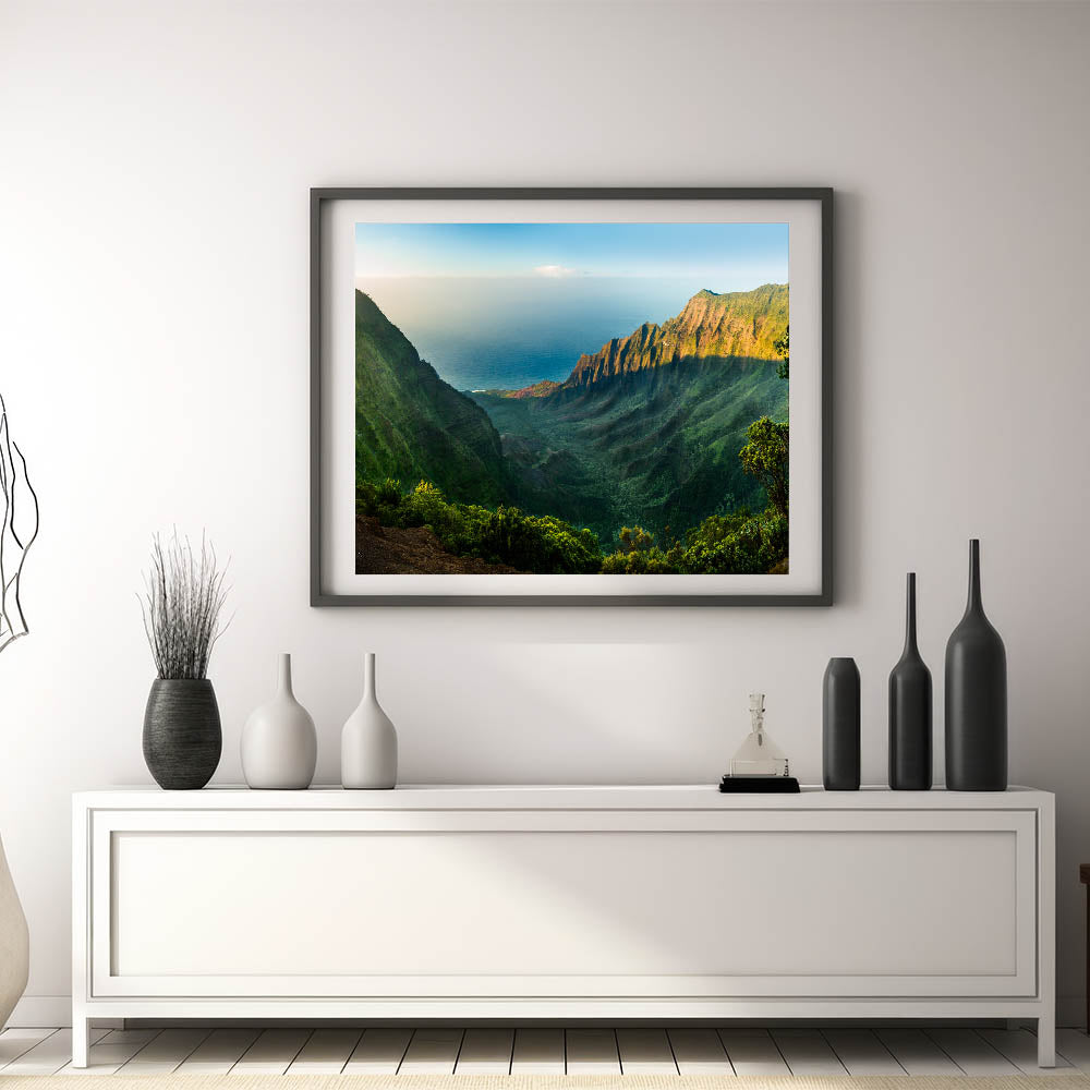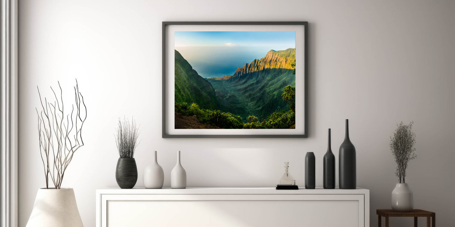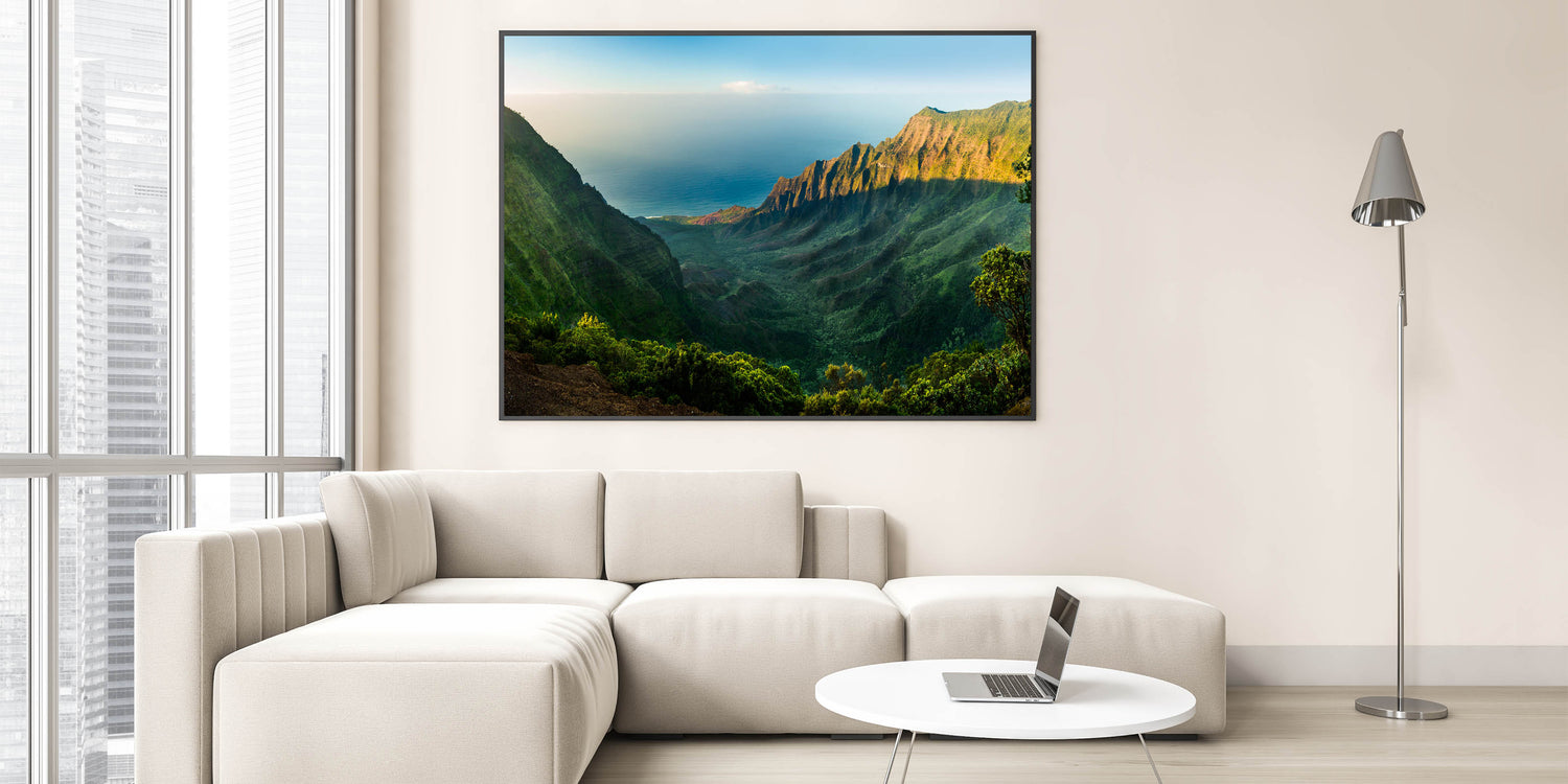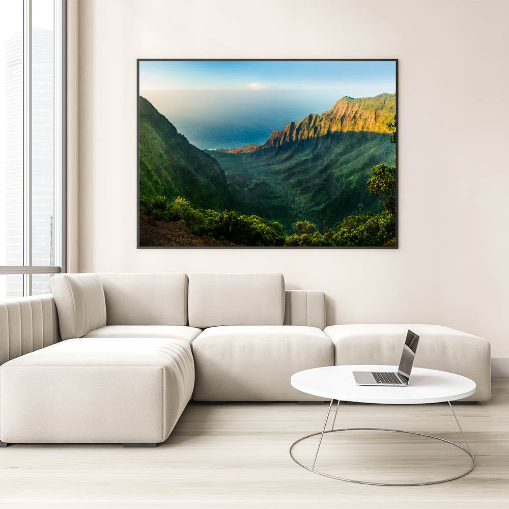 - Stunning Details: The rich greens of the valley contrast with the deep blues of the ocean, creating a dynamic and visually striking piece that brings nature’s beauty indoors.
