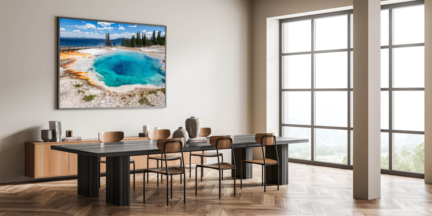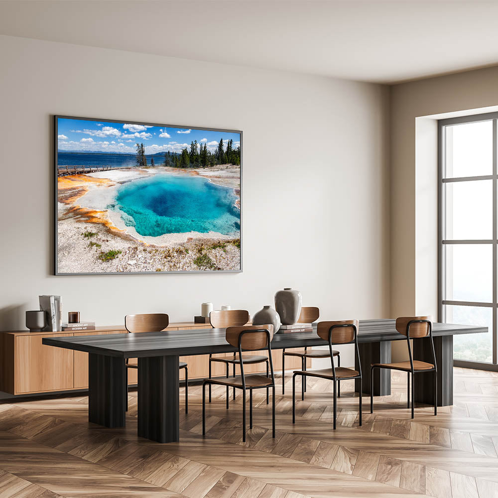 Enhance your space with this captivating natural landscape that brings the serene beauty of geothermal wonders into your home. Each print is crafted with meticulous attention to detail, ensuring the highest quality and lasting beauty.